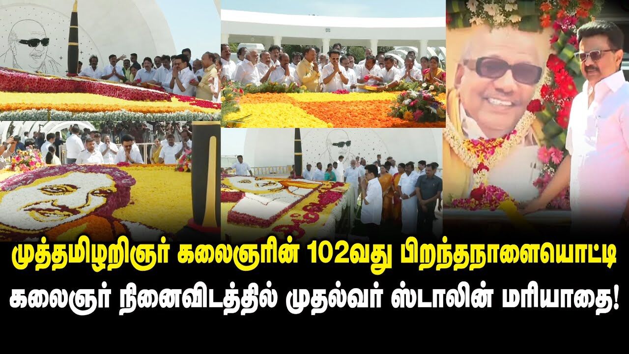 கலைஞரின் 102-வது பிறந்தநாளையொட்டி கலைஞர் நினைவிடத்தில் முதல்வர் ஸ்டாலின் மரியாதை! | CM MK Stalin