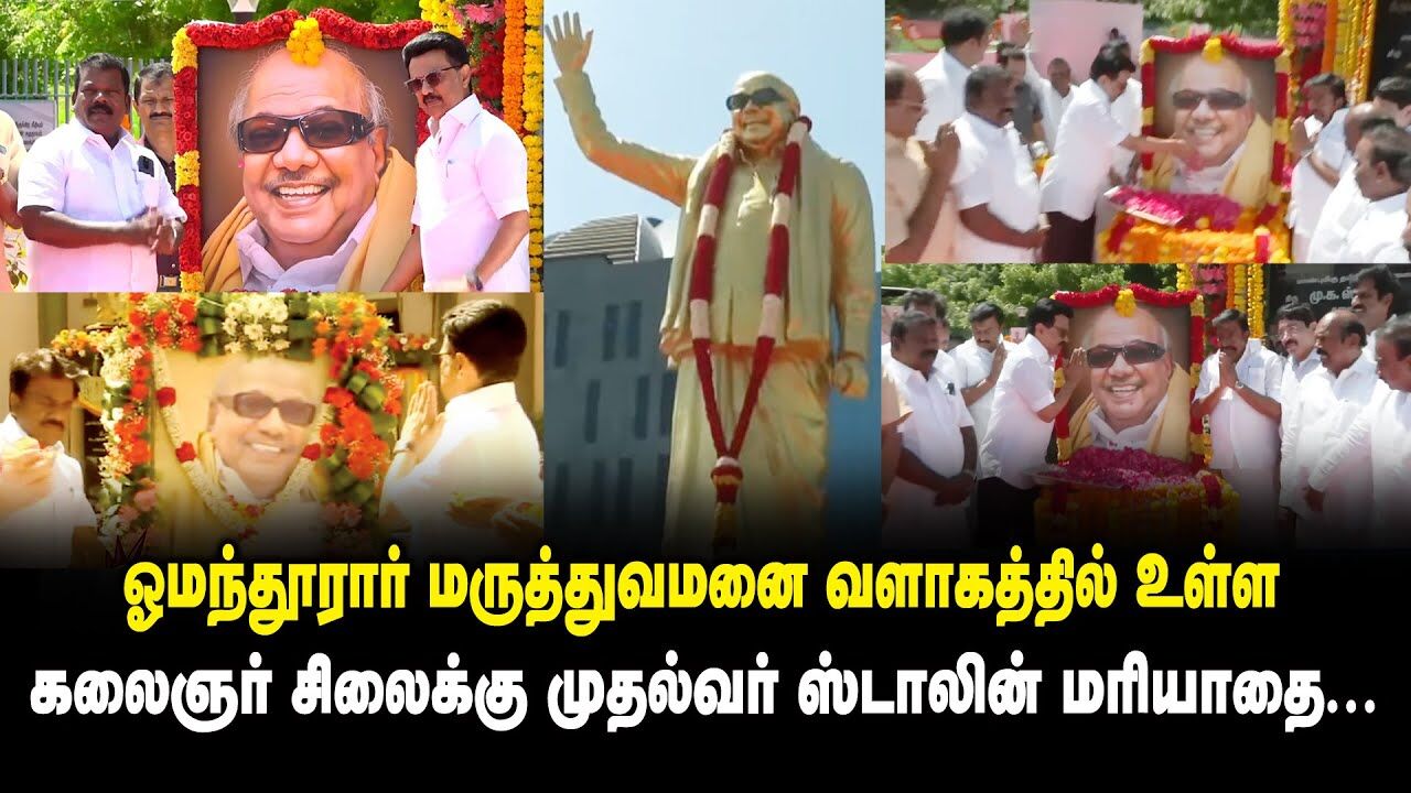 ஓமந்தூரார் மருத்துவமனை வளாகத்தில் உள்ள கலைஞர் சிலைக்கு முதல்வர் ஸ்டாலின் மரியாதை!! Kalaignar Statue