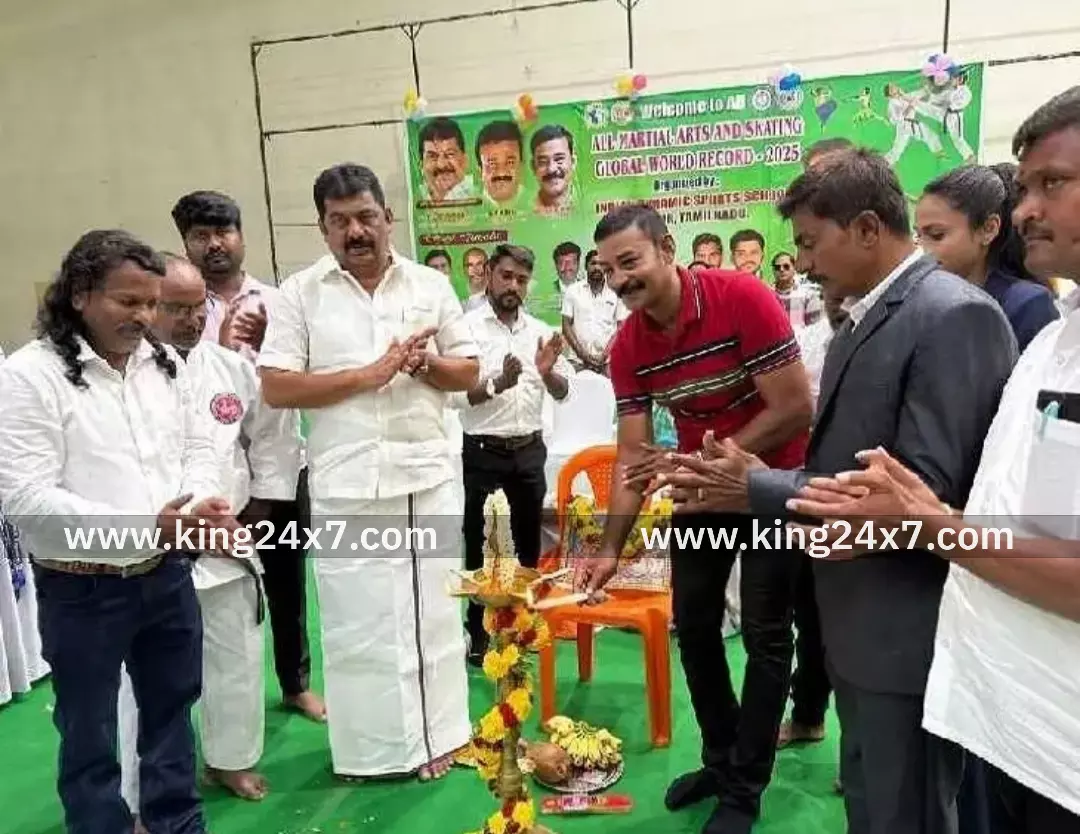 கிருஷ்ணகிரி மாவட்டம் ஓசூரில் உள்ள தனியார் பள்ளி சார்பில் தனியார் கல்லூரி உள்விளையாட்டு அரங்கில் அனைத்து யுத்தகலை மற்றும் ஸ்கேட்டிங் உலக சாதனை நிகழ்ச்சி நேற்று நடைபெற்றது. இதில் பல மாநிலங்களில் இருந்து போட்டியாளர்கள் கலந்து கொண்டு தங்கள் திறமைகளை வெளிப்படுத்தினர். இந்நிகழ்வில் ஓசூர் சட்டமன்ற உறுப்பினர் ஒய் பிரகாஷ் மற்றும் நடிகர் கராத்தே ராஜா கலந்து கொண்டு, போட்டியை துவக்கி வைத்தனர். இதில் ஏராளமானோர் கலந்து கொண்டனர்.