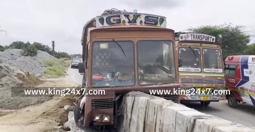 சூளகிரி அருகே தடுப்பு சுவரில் லாரி மோதிய விபத்து.