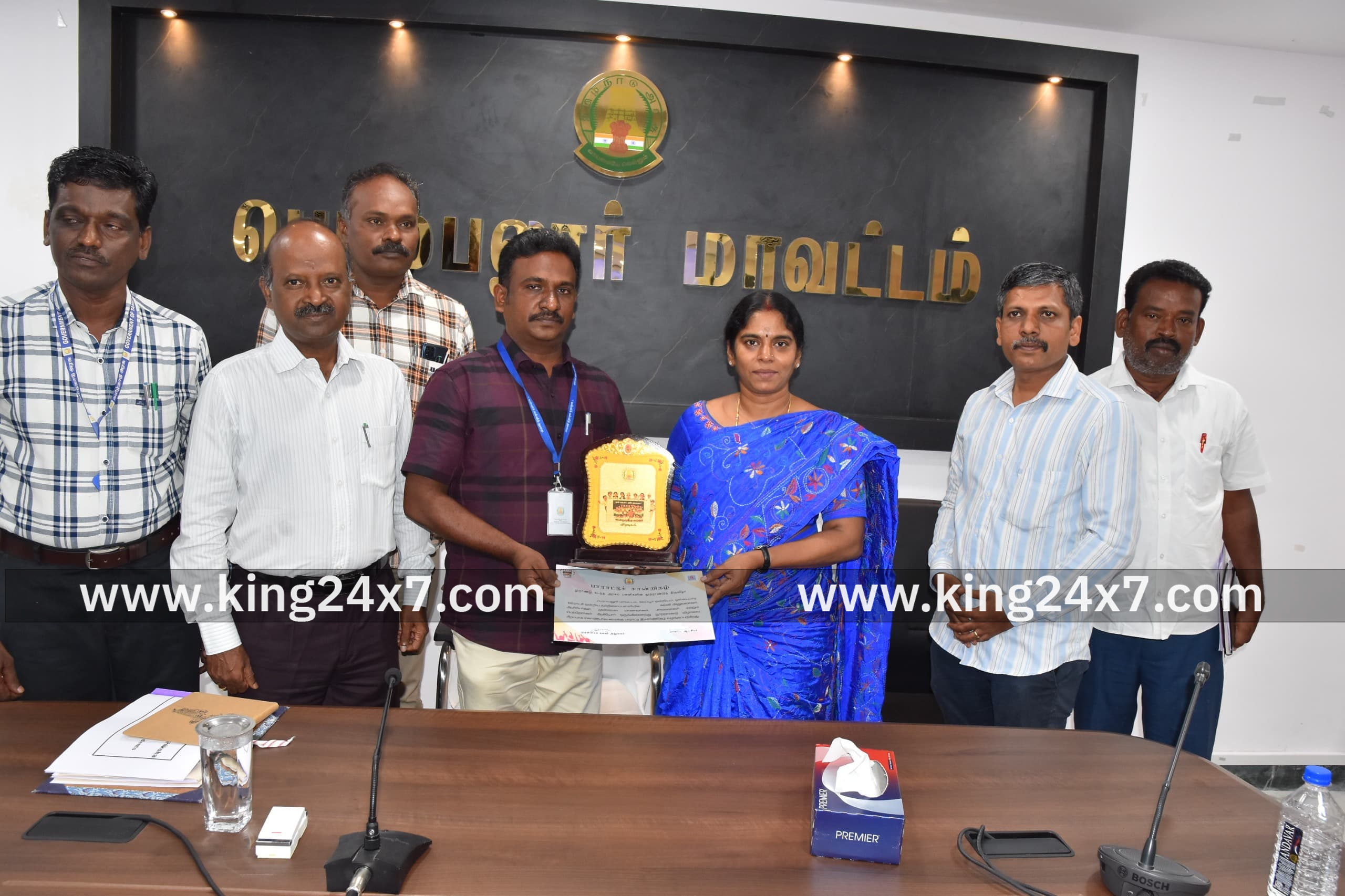 அரசுப் பள்ளிக்கு பாராட்டு சான்றிதழும் கேடயமும் வழங்கிய ஆட்சியர்