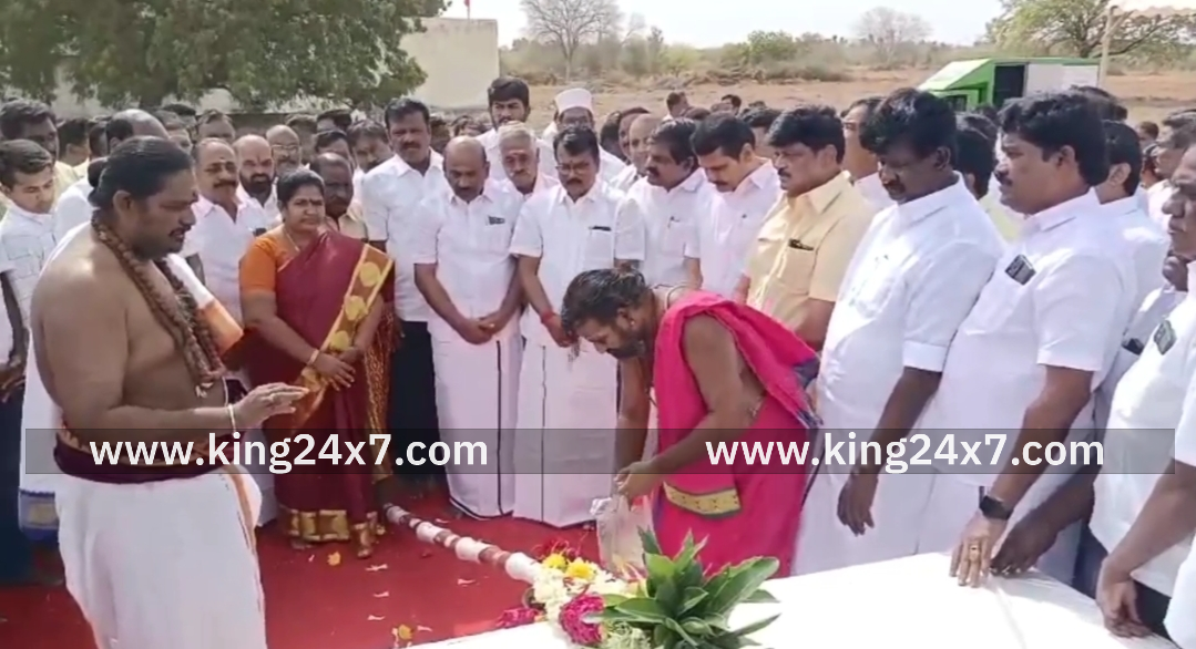 கரூரில் நடைபெறும் முப்பெரும் விழாவிற்கு கால் கோள் விழா-செந்தில் பாலாஜி துவக்கி வைத்தார்.