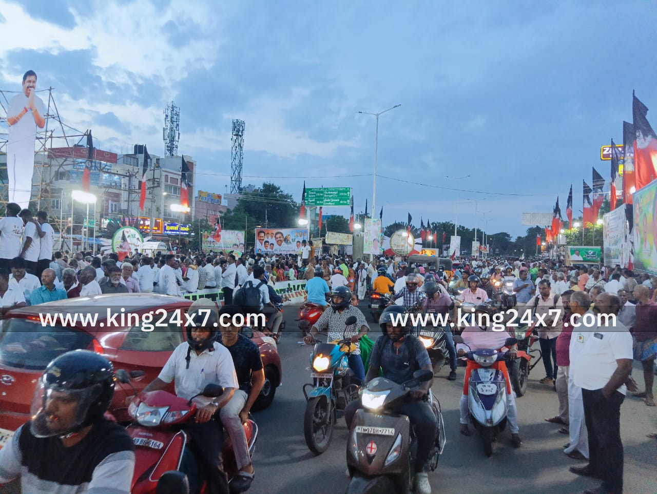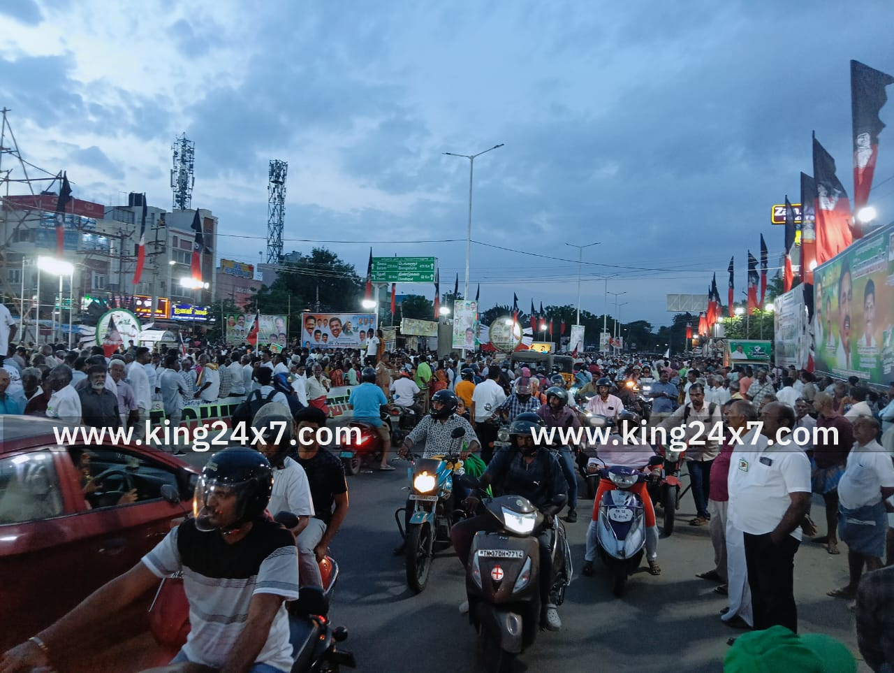 மதுரை பழங்காநத்தம் பகுதியில் இன்று (செப்.3) மாலை எடப்பாடி பழனிச்சாமியின் எழுச்சி பயண கூட்டத்தில் அதிமுக கொடியைவிட த.மா.க பா.ஜ.க ஐ.ஜே.கே தென்னிந்திய பார்வர்ட் கட்சி கொடிகள் அதிகம் காணப்படுகின்றன. கூட்டம் நடைபெறும் பகுதியான பழங்காநத்தம் பைபாஸ் முழுமையாக போக்குவரத்து பாதிப்பு ஏற்பட்டு உள்ளது. இதனால் பொதுமக்கள் அவதி அடைந்து வருகின்றனர்.இப்பகுதியில் சுமார் 5 ஆயிரத்திற்கும் மேற்பட்ட தொண்டர்கள் கூட்டம் காணப்படுகிறது.