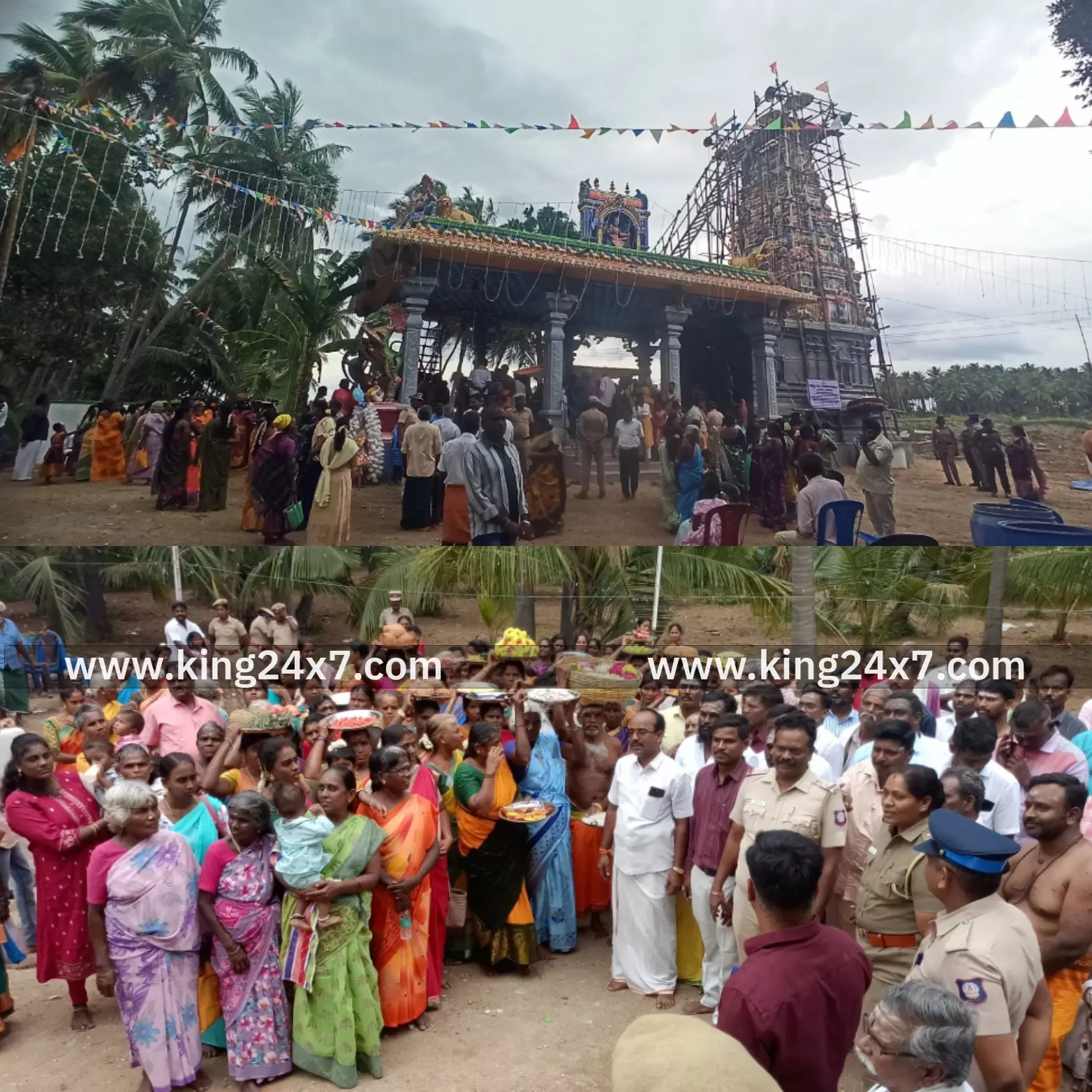 கிருஷ்ணகிரி மாவட்டம் போச்சம்பள்ளி அடுத்த மருதேரி கிராமத்தில் ஸ்ரீ பட்டாளம்மன் கோவிலில் நாளை கும்பாபிஷேகம் நடைபெற உள்ள நிலையில் இன்று அகரம் தாய் கிராமத்தில் இருந்து தாய் வீட்டு சீதனமான மாங்கல்யம் சீர்வரிசையை கிராம மக்கள் மேலத்தாளங்கள் முழங்க கொண்டு வந்து கோவிலுக்கு அளித்தனர். இதனை போச்சம்பள்ளி இந்து அறநிலைத்துறை ஆய்வாளர் ராமமூர்த்தி பர்கூர் அப்போது டி.எஸ்.பி. முத்துகிருஷ்ணன் வட்டாட்சியர் சத்திய ஆகியோர் பெற்றுக்கொண்டனர்.