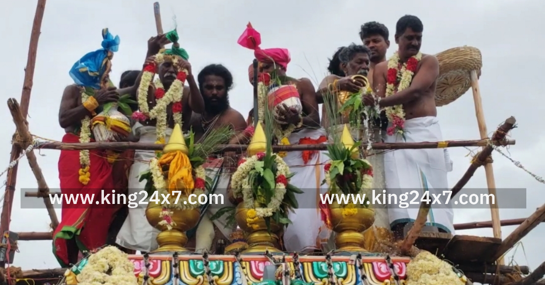 12 ஆண்டுகள் ஆகிறது. இந்த கோயில் புனரமைத்து வர்ணம் பூசப்பட்டுள்ளது. மேலும் கோயில் நுழைவு வாயில் புதிதாக அமைக்கப்பட்டுள்ளது. இக்கோயில் கும்பாபிஷேகம் வரும் 4 ம்தேதி நடப்பதையொட்டி கும்பாபிஷேகத்திற்கு 7 நதி களில் இருந்து புனித நீரால் கோபுர கலசத்துக்கு அபிஷேகம் செய்து ஊற்றப்பட்டது.;