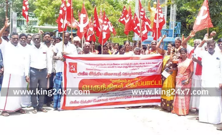 கிருஷ்ணகிரியில் விவசாய தொழிலாளர்கள் சங்கத்தினர் ஆர்ப்பாட்டம்.