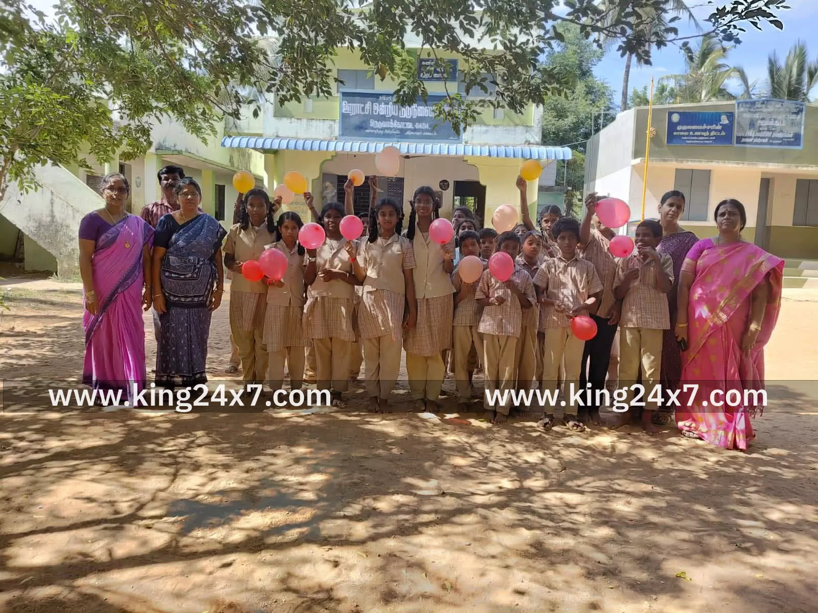 சிவப்பு பலூன்களுடன் சந்திர கிரகணம் குறித்த விழிப்புணர்வு ஏற்படுத்திய மாணவர்கள்