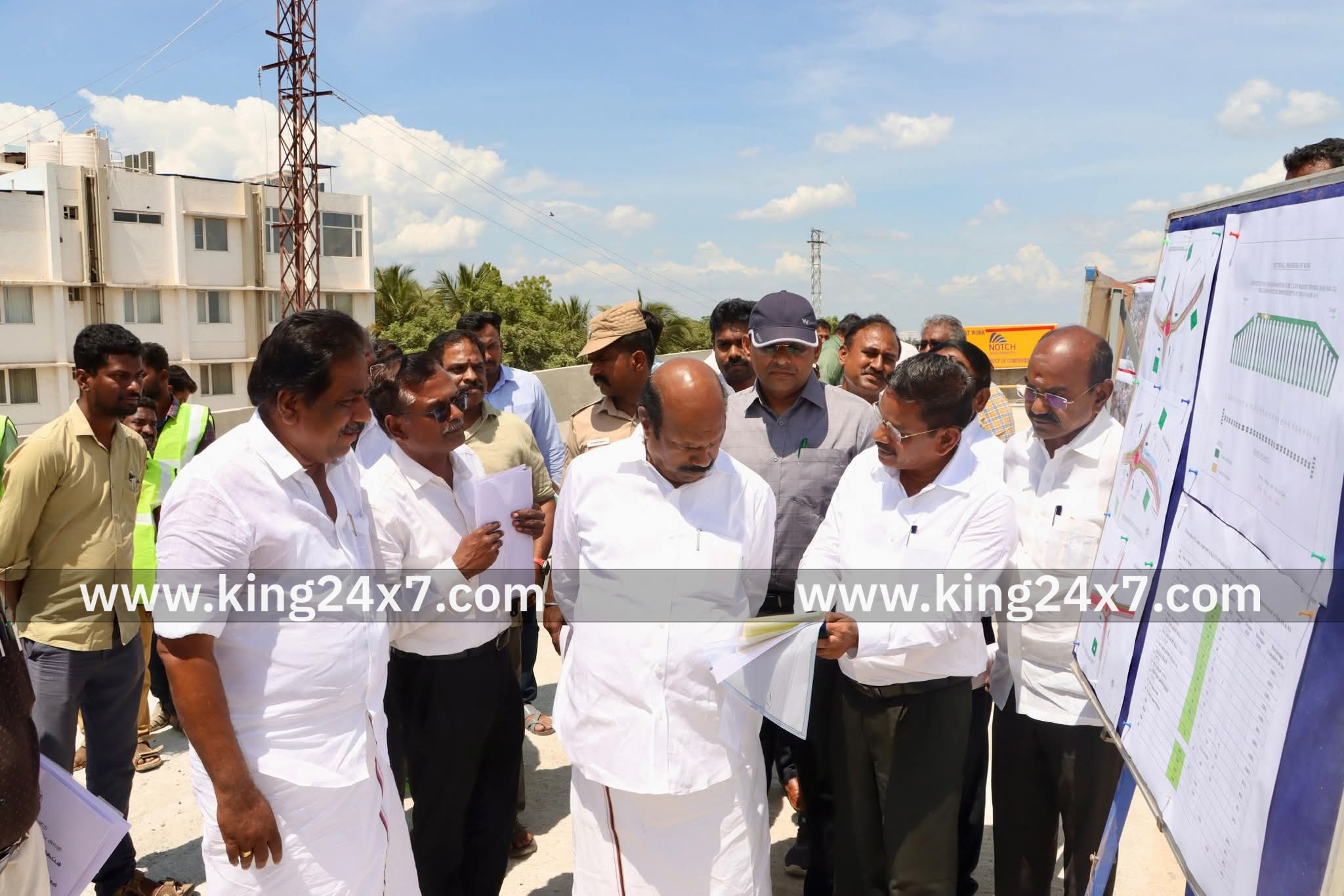 புதிய மேம்பால பணிகளை ஆய்வு மேற்கொண்ட அமைச்சர்கள்
