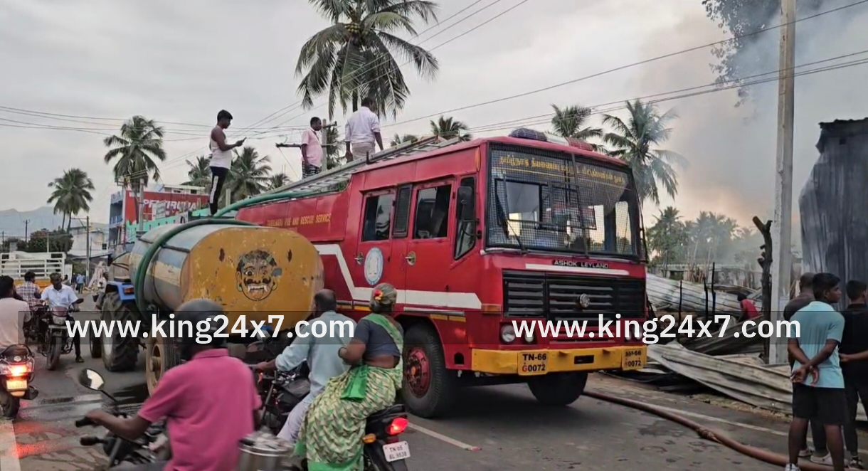 திருப்பத்தூர் மாவட்டம் வாணியம்பாடியில் அதிகாலையில் திடீரென ஏற்பட்ட தீ விபத்தில் பல லட்சம் ரூபாய் மதிப்பிலான தேக்கு மரங்கள் மற்றும் இயந்திரங்கள் தீயில் எரிந்து சேதம் திருப்பத்தூர் மாவட்டம் வாணியம்பாடி பெருமாள்பேட்டை பகுதியில் கணவாய் புதூர் பகுதியை சேர்ந்த சம்பத் என்பவர் மர சாமான்கள் மற்றும் பர்னிச்சர் செய்யும் கடை நடத்தி வருகிறார். இந்நிலையில் இன்று அதிகாலை கடையில் திடீரென ஏற்பட்ட தீ விபத்தில் பல லட்சம் ரூபாய் மதிப்பிலான தேக்கு மரங்கள், இயந்திரங்கள் எறிந்து மாசமாகியுள்ளது. தகவலின் பெயரில் வாணியம்பாடி மற்றும் ஆம்பூர் ஆகிய பகுதிகளில் இருந்து தீயணைப்பு துறையினர் சம்பவ இடத்திற்கு விரைந்து சென்று தீயை அணைக்கும் பணியில் ஈடுபட்டு வருகின்றனர். இருப்பினும் மரக்கடையில் இருந்த பொருட்கள் முற்றிலும் எரிந்தது. இதில் கடையில் வைக்கப்பட்டிருந்த பர்னிச்சர் பொருட்கள், சோபாக்கள், தேக்கு மரங்கள், மரச்சாமான்கள் செய்யும் இயந்திரங்கள், மர அறுவை இயந்திரங்கள் உட்பட சுமார் ரூபாய் 50 லட்சம் மதிப்பிலான பொருட்கள் முற்றிலும் தீயில் எரிந்துள்ளது. வாணியம்பாடியில் வேறு பகுதியில் இவரது மர சாமான்களுக்கான பர்னிச்சர் கடை இயங்கி வந்த நிலையில் தற்போது பர்னிச்சர்கள் செய்வதற்காக தேக்கு மரங்கள் உள்ளிட்ட மரங்களுடன் புதிதாக இப்பகுதியில் கடையை திறந்து 15 நாட்களாக நிலையிலலும் இணைப்பு கூட கொடுக்காத நிலையில் தற்போது ஏற்பட்டுள்ள தீ விபத்திற்கு மர்ம நபர்கள் காரணமா அல்லது வேறு ஏதேனும் காரணமா என தீயணைப்புத் துறையினர் மற்றும் நகர காவல் துறையினர் விசாரணை மேற்கொண்டு வருகின்றனர்.