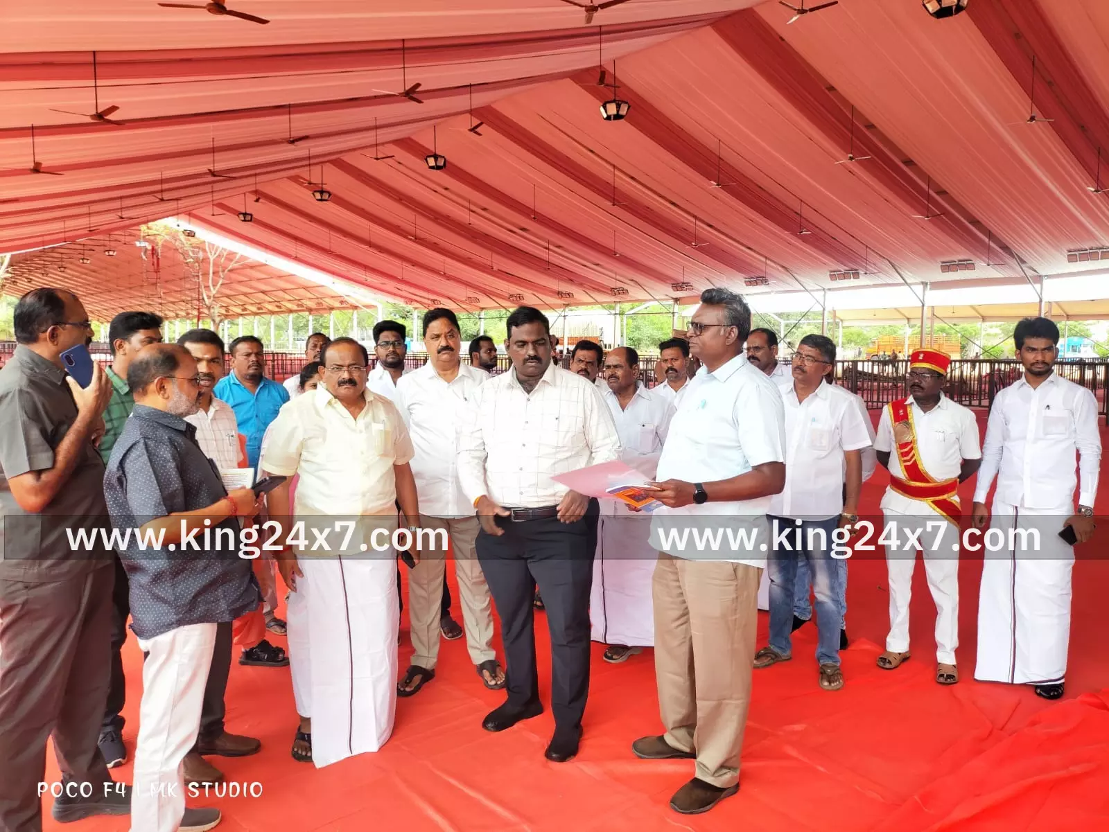 அரசு நிகழ்ச்சி நடைபெறும் இடத்தில் அமைச்சர் ஆய்வு.