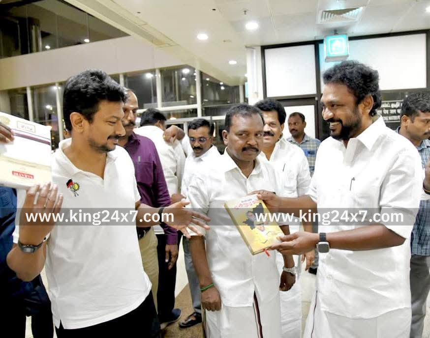 மதுரைக்கு நேற்றிரவு வந்த உதயநிதி ஸ்டாலினுக்கு உற்சாக வரவேற்பு அளிக்கப்பட்டது;