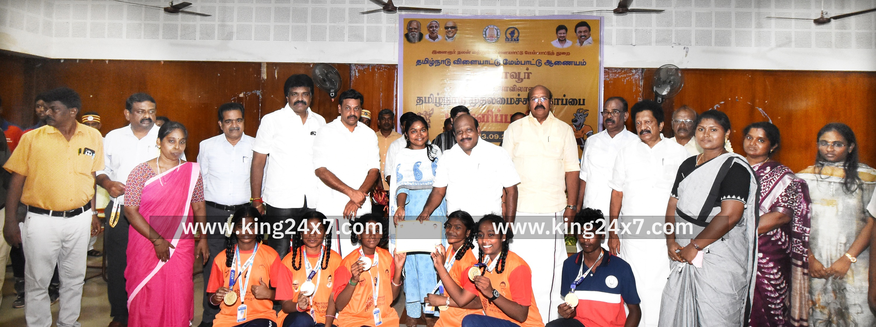 தஞ்சாவூரில் முதலமைச்சர் கோப்பை மாவட்ட அளவிலான விளையாட்டுப் போட்டியில் வெற்றி பெற்றவர்களுக்கு பரிசு வழங்கல்