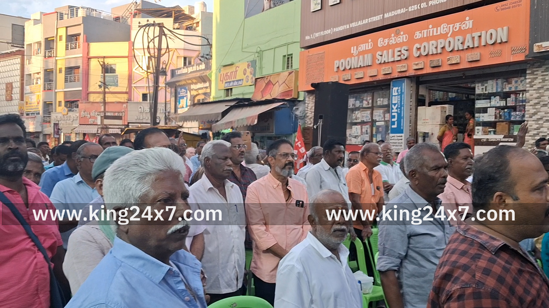 மதுரை டி எம் கோர்ட் பகுதியில் அனைத்து தொழிற்சங்கத்தினர் ஆர்ப்பாட்டத்தில் ஈடுபட்டனர்;