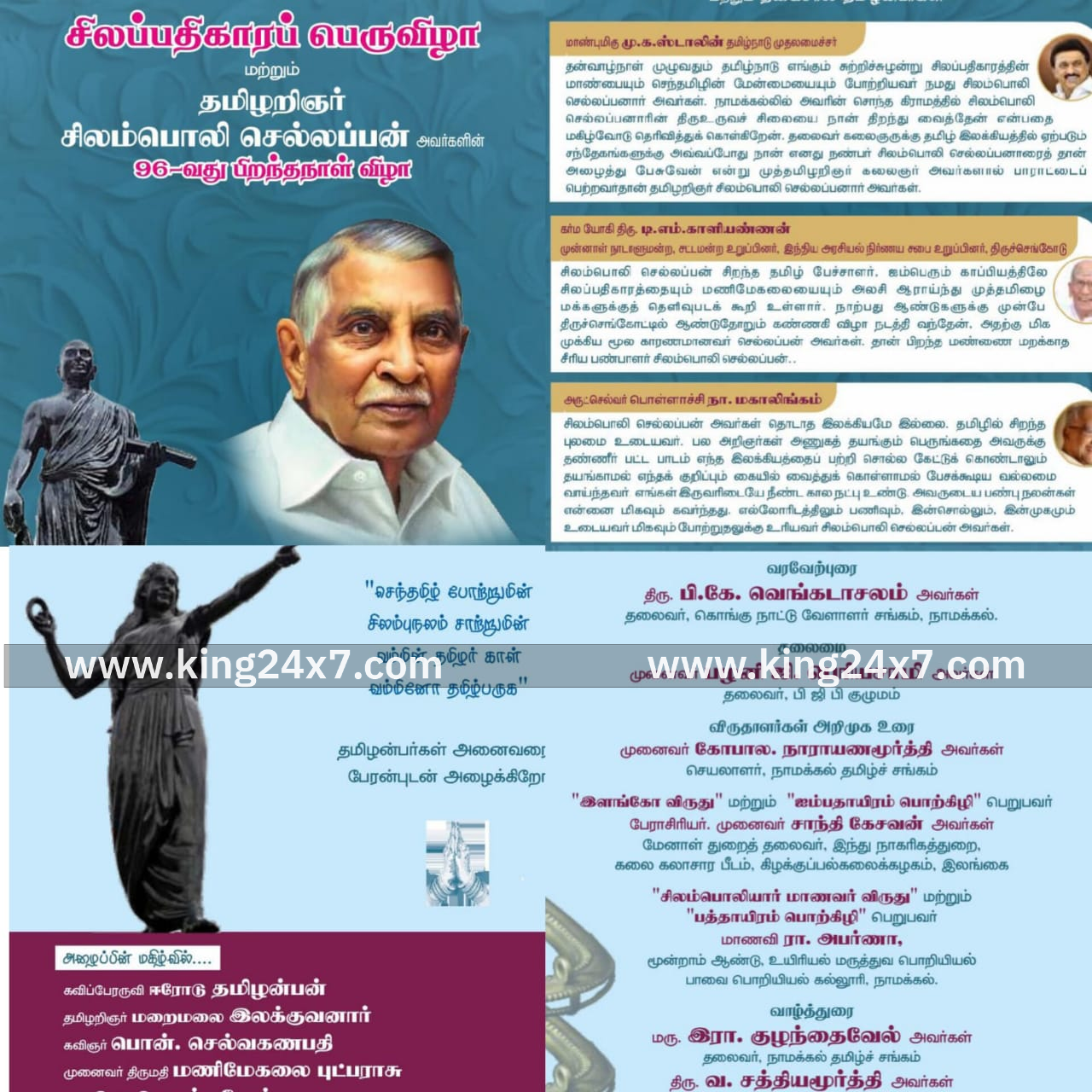 நாமக்கல்லில் இன்று சிலப்பதிகாரப் பெருவிழா மற்றும் சிலம்பொலி யார் பிறந்தநாள் விழா!