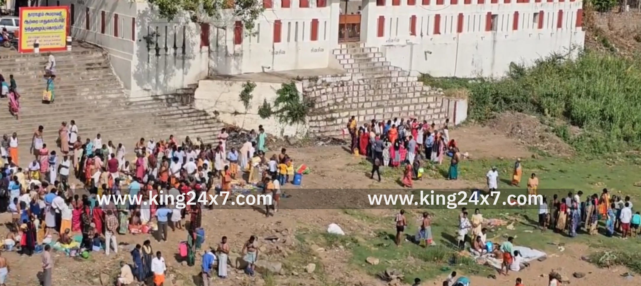 தாராபுரம் அமராவதி ஆற்றில் தர்ப்பணம் கொடுக்கும் பொதுமக்கள்