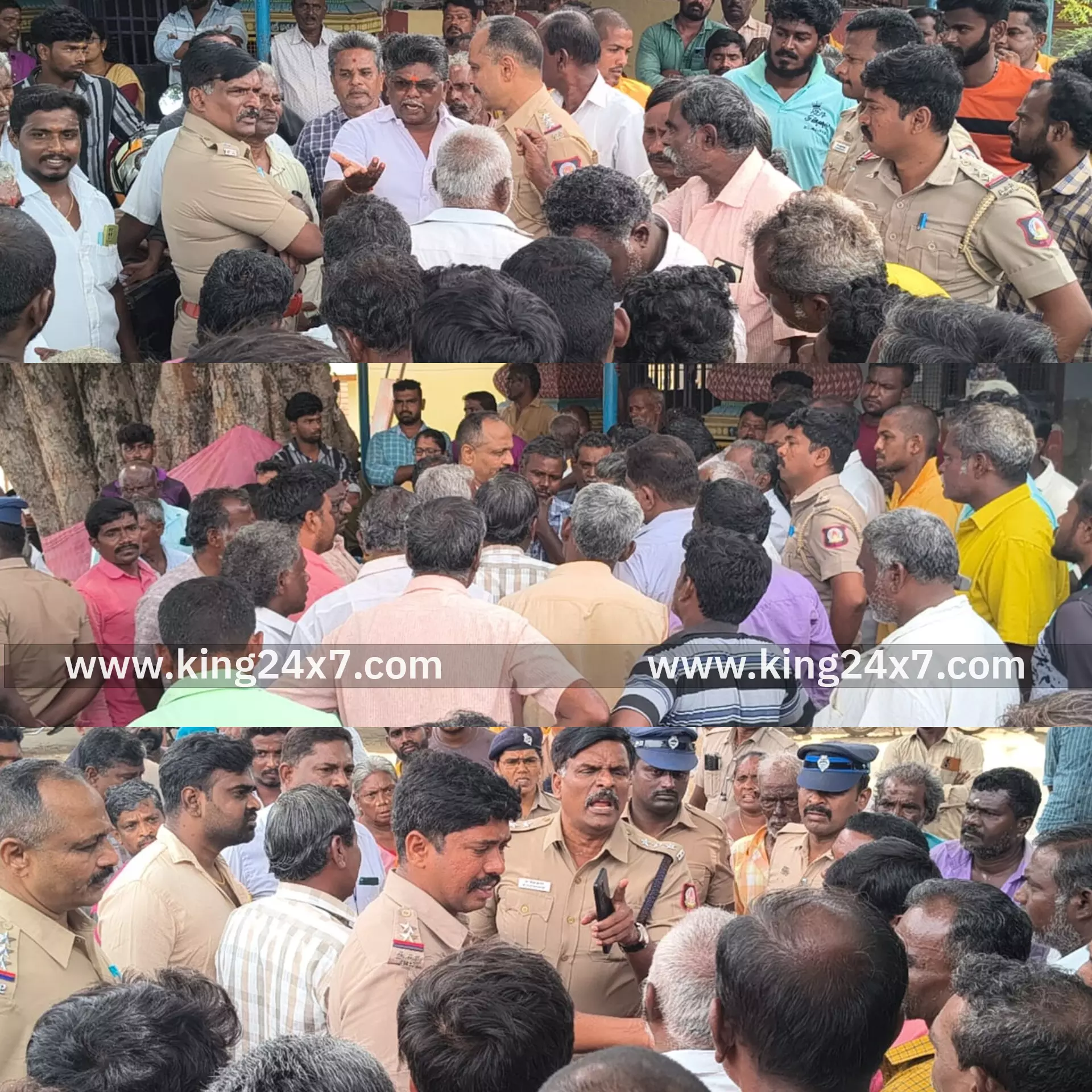 நாமக்கல் மாவட்டம் ராசிபுரம் அடுத்த கட்டனாச்சம்பட்டி பகுதியில் இந்து சமய அறநிலையத் துறைக்கு உட்பட்டு 3ஏக்கர் பரப்பளவில் நிலமானது உள்ளது.இந்த நிலத்தில் அப்பகுதியை சேர்ந்த மக்கள் புதிதாக கோவில் கட்டிய வழிபாடு செய்து வருகின்றனர். தற்போது அங்கு உள்ள நிலத்தை அளவீடு செய்ய உயர்நீதிமன்ற மதுரை கிளையில் மனு தாக்கல் செய்யப்பட்ட நிலையில் தற்போது அந்த நிலத்தை அளவீடு செய்ய அதிகாரிகளுக்கு நீதிமன்றமானது உத்தரவிட்டது.நீதிமன்ற உத்தரவுபடி அதிகாரிகள் அளவீடு செய்வதற்காக அந்த நிலத்திற்கு சென்ற போது அங்கு கிராம மக்கள் இந்து சமய அறநிலைத்துறை நிலத்தில் குளறுபடி நடைபெற்றதாக கூறினர். தொடர்ந்து அதிகாரிகள் கிராம மக்களிடம் பேச்சு வார்த்தை நடத்திய நிலையில் கிராம மக்களுக்கும்,அரசு அதிகாரிகள், காவல்துறையினருக்கும் இடையே கடும் வாக்குவாதமானது ஈடுபட்டது.பின்னர் காவல் துறையினர் சமரசம் பேசி பின்னர் நில அளவீடு செய்வதற்கு முடிவு செய்தனர்.பலத்த போலீஸ் பாதுகாப்புடன் நில அளவீட்டாளர்கள் நிலத்தை அளவீடு செய்து பணியை முடித்தனர். உயர்நீதிமன்ற மதுரை கிளையின் உத்தரவின் பெயரில் நில அளவீடு செய்ய சென்ற அதிகாரிகளை கிராம மக்கள் தடுத்து நிறுத்தி வாக்குவாதத்தில் ஈடுபட்ட சம்பவம் அப்பகுதியில் பெரும் பரபரப்பை ஏற்படுத்தியது...