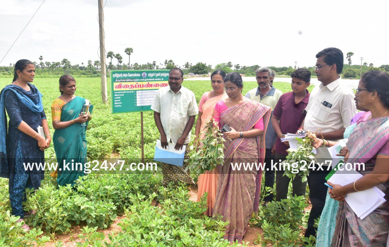 நாமக்கல் மாவட்ட ஆட்சியர் எலச்சிபாளையம் வட்டாரத்திற்குட்பட்ட பகுதிகளில் ரூ.2.09 கோடி மதிப்பீட்டில் நடைபெற்று வரும் பல்வேறு வளர்ச்சித் திட்டப்பணிகளை ஆய்வு மேற்கொண்டு, நிலக்கடலை விதைப்பண்ணை அமைத்துள்ள விவசாயியுடன் கலந்துரையாடினார்.;