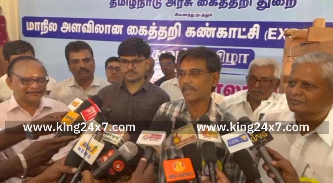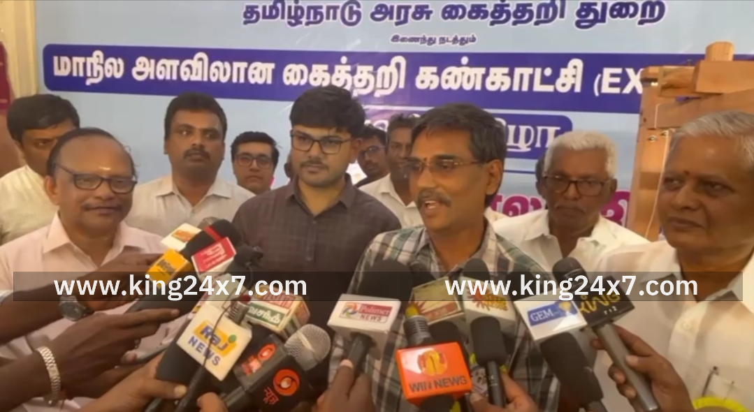 கைத்தறி ஆடைகளை பண்டிகை நாட்களில் வாங்கி நெசவாளர்களின் வாழ்வில் ஒளி ஏற்ற வேண்டும்-பரணி குமார் கரூரில் வேண்டுகோள். கரூரில் இன்று துவங்கி தொடர்ந்து 16 நாட்களுக்கு நடைபெறும் கைத்தறி கண்காட்சி துவக்க விழா இன்று நடைபெற்றது. இந்த கைத்தறி கண்காட்சி குறித்து செய்தியாளர்களிடம் தெரிவித்த கைத்தறி இயக்குனர் பரணிகுமார்.கண்காட்சியில் 60 விதமான ஸ்டால்கள் அமைக்கப்பட்டுள்ளது. இதில் பல்வேறு விதமான ஆடைகள் காட்சிப்படுத்தப்பட்டுள்ளது. கைத்தறி நெசவாளர்களின் வாழ்வை மேம்படுத்துவதற்காக மத்திய மாநில அரசுகள் இணைந்து நடத்தும் இந்த கண்காட்சியை பொதுமக்கள் பயன்படுத்திக் கொண்டு நெசவாளர்களின் வாழ்வாதாரம் மேம்பட கைத்தறி ஆடைகளை பண்டிகை நாட்களில் வாங்கி அவர்களது வாழ்வில் ஒளி ஏற்ற வேண்டும் எனவும் மூன்று கோடி ரூபாய்க்கு இலக்கு நிர்ணயம் செய்திருந்தாலும் ஒன்னறையில் இருந்து 2 கோடி ரூபாய் அளவிற்கு விற்பனை நடந்திட பணிகள் நடைபெற்று வருவதாக தெரிவித்தார்.