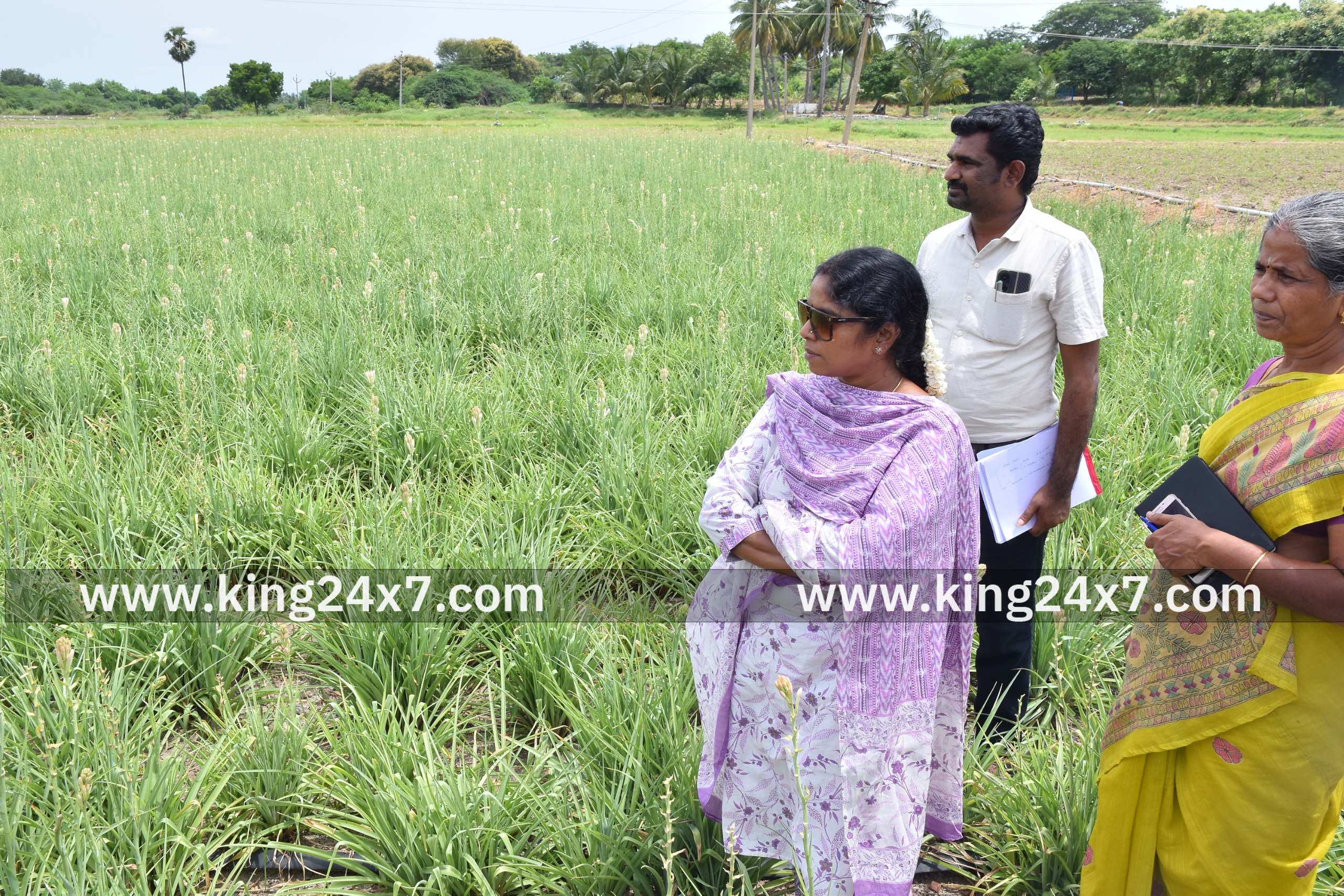 சம்மங்கி பயிரிடும் விவசாயி வயலை ஆட்சியர் ஆய்வு