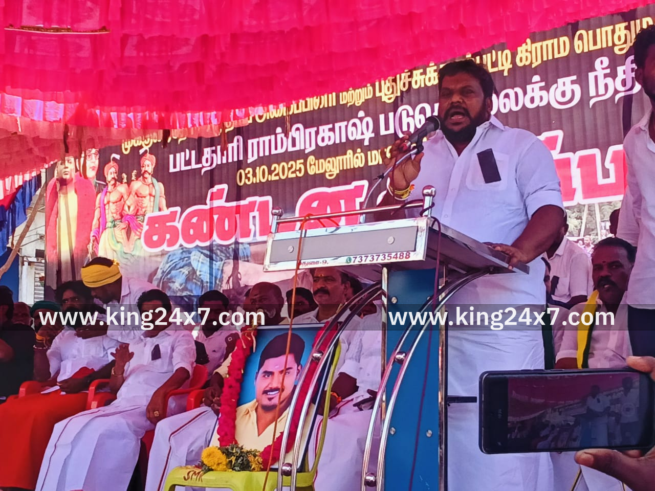 மதுரை மேலூர் அருகே கடந்த சில நாட்களுக்கு முன்பு கொலையான பொறியியல் பட்டதாரியான ராம் பிரகாஷ் (28) குடும்பத்திற்கு நிவாரண நிதி மற்றும் அரசு வேலை வழங்க கோரி மேலூர் பேருந்து நிலையம் அருகே நேற்று ( அக்.3) 14 தென்னரசு நாட்டு அம்பலகாரர்கள், முக்குலத்து சமுதாயத அமைப்பினர் மற்றும் 18 கிராம அம்பலகாரர்கள் சார்பில் கண்டன ஆர்ப்பாட்டம் நடைபெற்றது. இதில் கிராம பெண்கள், பொதுமக்கள் என ஆயிரத்திற்கும் மேற்பட்டோர் கலந்து கொண்டனர்.