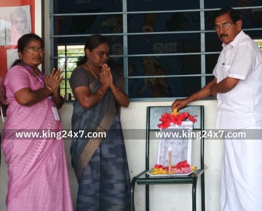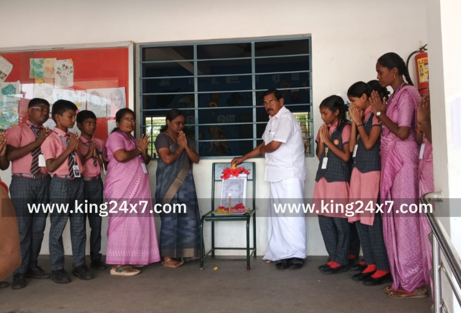 கரூர் துயர சம்பவத்தில் உயிரிழந்த மாணவிக்கு பள்ளியின் சார்பில் மலர் அஞ்சலி.