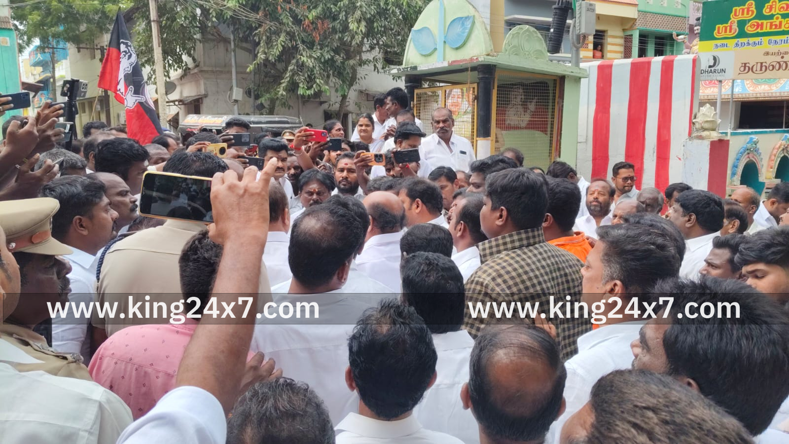 மதுரை அவனியாபுரம் திருப்பரங்குன்றம் சாலையில் ஜல்லிக்கட்டு வாடி வாசல் அருகே உள்ள எம்ஜிஆர் சிலையை சேதப்படுத்திய மர்ம நபர்களை போலீசார் கைது செய்ய வலியுறுத்தி இன்று (அக்.7) காலை அவனியாபுரத்தில் திருப்பரங்குன்றம் எம்எல்ஏ ராஜன் செல்லப்பா தலைமையில் சுமார் நூற்றுக்கும் மேற்பட்டோர் சாலை மறியலில் ஈடுபட்டனர். போலீசார் பேச்சுவார்த்தை நடத்தியும் பயனில்லாமல் போனதால் எம்எல்ஏ உள்ளிட்ட அனைவரும் கைது செய்யப்பட்டனர். இதனால் அப் பகுதி பரபரப்பாக காணப்பட்டது.