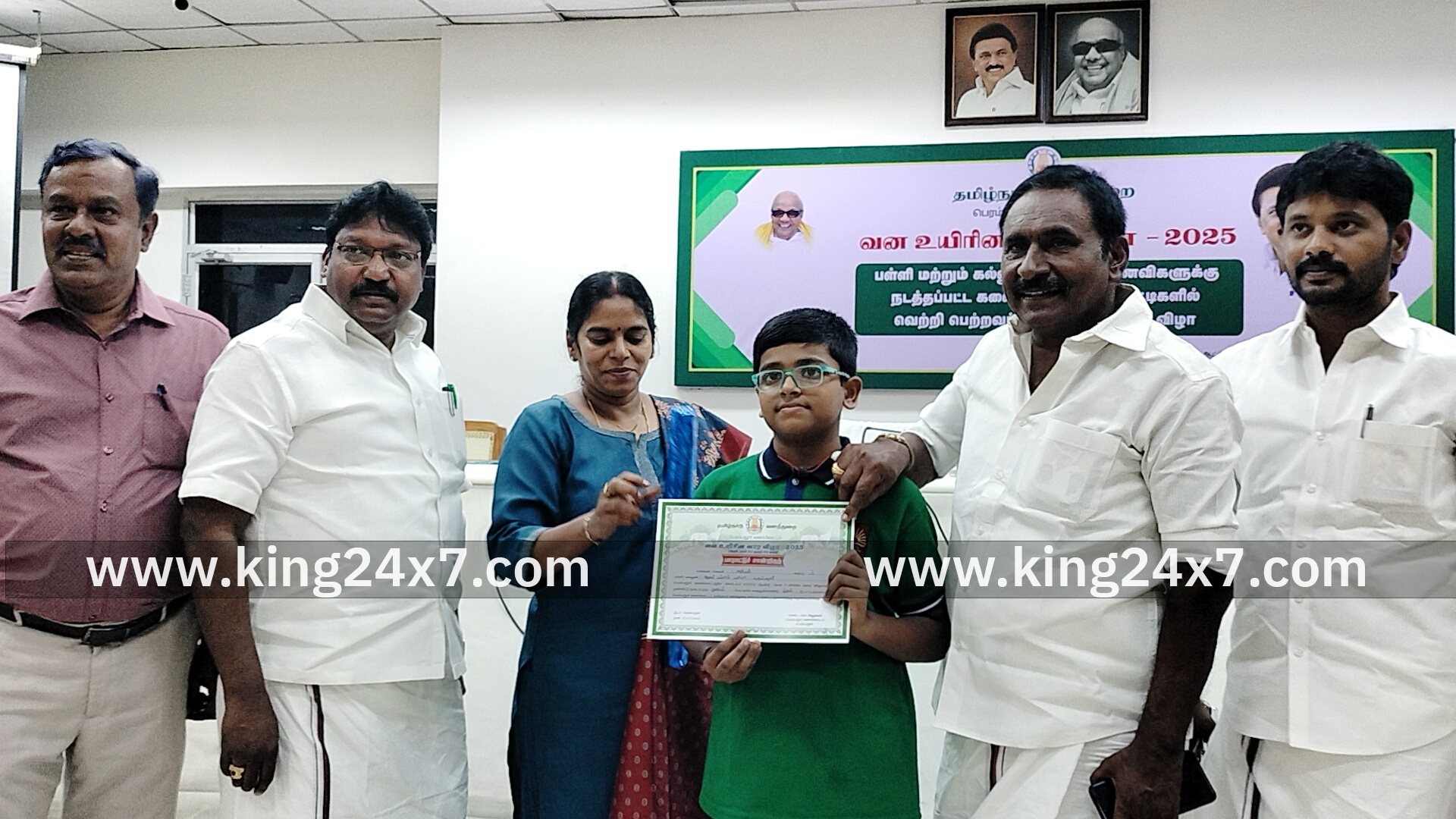வனஉயிரின வார விழாவினை முன்னிட்டு நடத்தப்பட்ட பல்வேறு விழிப்புணர்வு போட்டிகளில் வெற்றி பெற்றவர்களுக்கு பரிசு