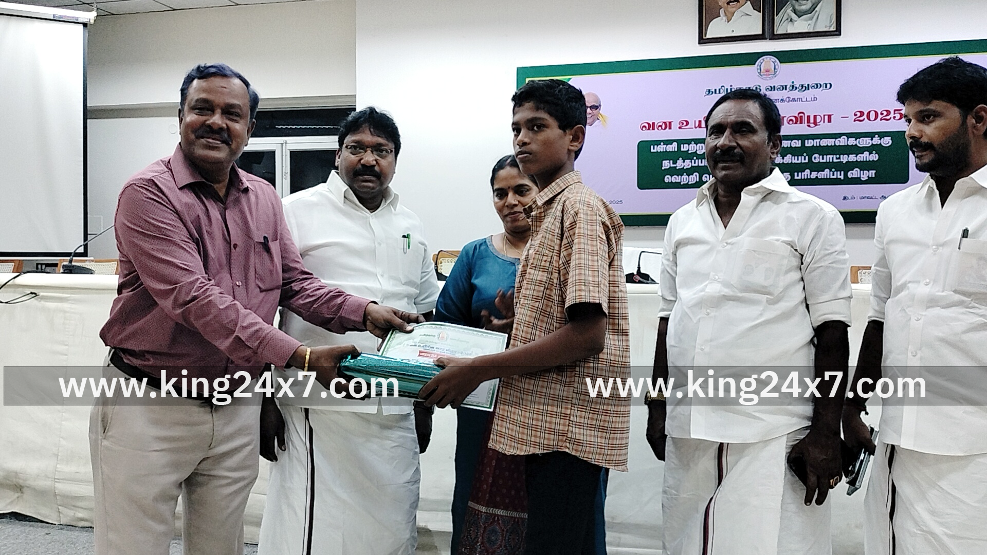 வனஉயிரின வார விழாவினை முன்னிட்டு நடத்தப்பட்ட பல்வேறு விழிப்புணர்வு போட்டிகளில் வெற்றி பெற்றவர்களுக்கு மாவட்ட ஆட்சித்தலைவர் ந.மிருணாளினி பெரம்பலூர் சட்டமன்ற உறுப்பினர் ம.பிரபாகரன் முன்னிலையில் பரிசுகளை வழங்கிப்பாராட்டினார் பெரம்பலூர் மாவட்ட ஆட்சியர் அலுவலக கூட்டரங்கில், வனத்துறையின் சார்பில், வனவிலங்கு வார விழாவினை முன்னிட்டு நடத்தப்பட்ட பல்வேறு விழிப்புணர்வு போட்டிகளில் வெற்றி பெற்றவர்களுக்கு மாவட்ட ஆட்சித்தலைவர் ந.மிருணாளினி பெரம்பலூர் சட்டமன்ற உறுப்பினர் திரு.ம.பிரபாகரன் முன்னிலையில் இன்று (08.10.2025) பரிசுகளை வழங்கி பாராட்டுக்களைத் தெரிவித்தார். பெரம்பலூர் மாவட்ட வனத்துறை சார்பில் ஒவ்வொரு ஆண்டும் வனவிலங்கு வார விழாவானது அக்டோபர் மாதம் 2 ஆம் தேதி முதல் 8 ஆம் தேதி வரை கொண்டாடப்பட்டு வருகிறது. வனங்களில் உள்ள உயிரினங்களை பாதுகாக்க வேண்டும் என்பதே இந்நிகழ்வின் நோக்கமாகும். இதுகுறித்து மாணவ,மாணவிகளிடையே விழிப்புணர்வு ஏற்படுத்தும் வகையில் விழிப்புணர்வு கட்டுரை, ஓவியப்போட்டிகள் நடத்தப்பட்டு போட்டிகளில் வெற்றி பெறுபவர்களுக்கு பரிசுகள் வழங்கப்பட்டு வருகிறது. அதனடிப்படையில், இந்த ஆண்டு வனவிலங்கு வார விழாவையொட்டி பள்ளி மற்றும் கல்லூரி மாணவ, மாணவியர்களுக்கு ஓவியப்போட்டி மற்றும் கட்டுரைப்போட்டி 04.10.2025 அன்று பெரம்பலூர் மாவட்ட வன அலுவலகத்தில் நடைபெற்றது. இப்போட்டிகளில் வெற்றிப் பெற்ற பள்ளி மற்றும் கல்லூரி மாணவ / மாணவியர்களுக்கு பாராட்டுச் சான்றிதழ் மற்றும் பரிசுகளை மாவட்ட ஆட்சித்தலைவர் பெரம்பலூர் சட்டமன்ற முன்னிலையில் வழங்கினார். தொடர்ந்து விளைநிலத்தில் வனவிலங்குகளால் ஏற்பட்டு பாதிப்புகளுக்கு பயிர் இழப்பீடு தொகையாக வேப்பந்தட்டை வனச்சரகத்திற்குட்பட்ட நெய்க்குப்பை கிராமத்தில் உள்ள த.கோபி என்பவருக்கு ரூ.2,500ம், கள்ளப்பட்டி, பூலாம்பாடி கிராமத்தில் உள்ள செந்தில்குமார் என்பவருக்கு ரூ.4,500ம் மாவட்ட ஆட்சித்தலைவர் அவர்கள் மற்றும் பெரம்பலூர் சட்டமன்ற ஆகியோர் வழங்கினர். இந்நிகழ்வில், மாவட்ட வன அலுவலர் த.இளங்கோவன், அட்மா தலைவர் வீ.ஜெகதீசன், திருச்சி சர்வதேச விமானநிலைய ஆலோசனைக்குழு உறுப்பினர் டி.ஆர்.சிவசங்கர், வனச்சரக அலுவலர்கள் பா.பழனிகுமரன் க.சுதாகர், க.முருகானந்தன் வனவர்கள், வனக்காப்பாளர்கள், வனக்காவலர்கள், பள்ளி மற்றும் கல்லூரி மாணவ / மாணவிகள், ஆசிரியர்கள், பெற்றோர்கள் பலர் கலந்து கொண்டனர்.