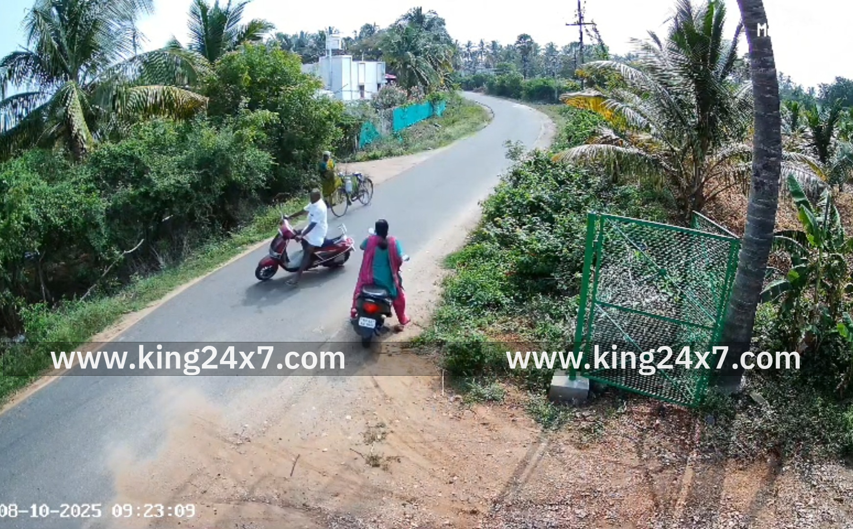 காங்கேயம் அருகே பைக்கில் நிலை தடுமாறி கீழே விழுந்த விவசாயி பலி - வீடியோ சமூக வலைதளங்களில் வைரல்