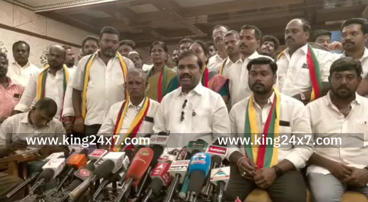 தமிழக வாழ்வுரிமைக் கட்சியின் நிறுவன தலைவரும் பண்ருட்டி எம்எல்ஏவுமான வேல்முருகன் செய்தியாளர்களை சந்தித்தார்;