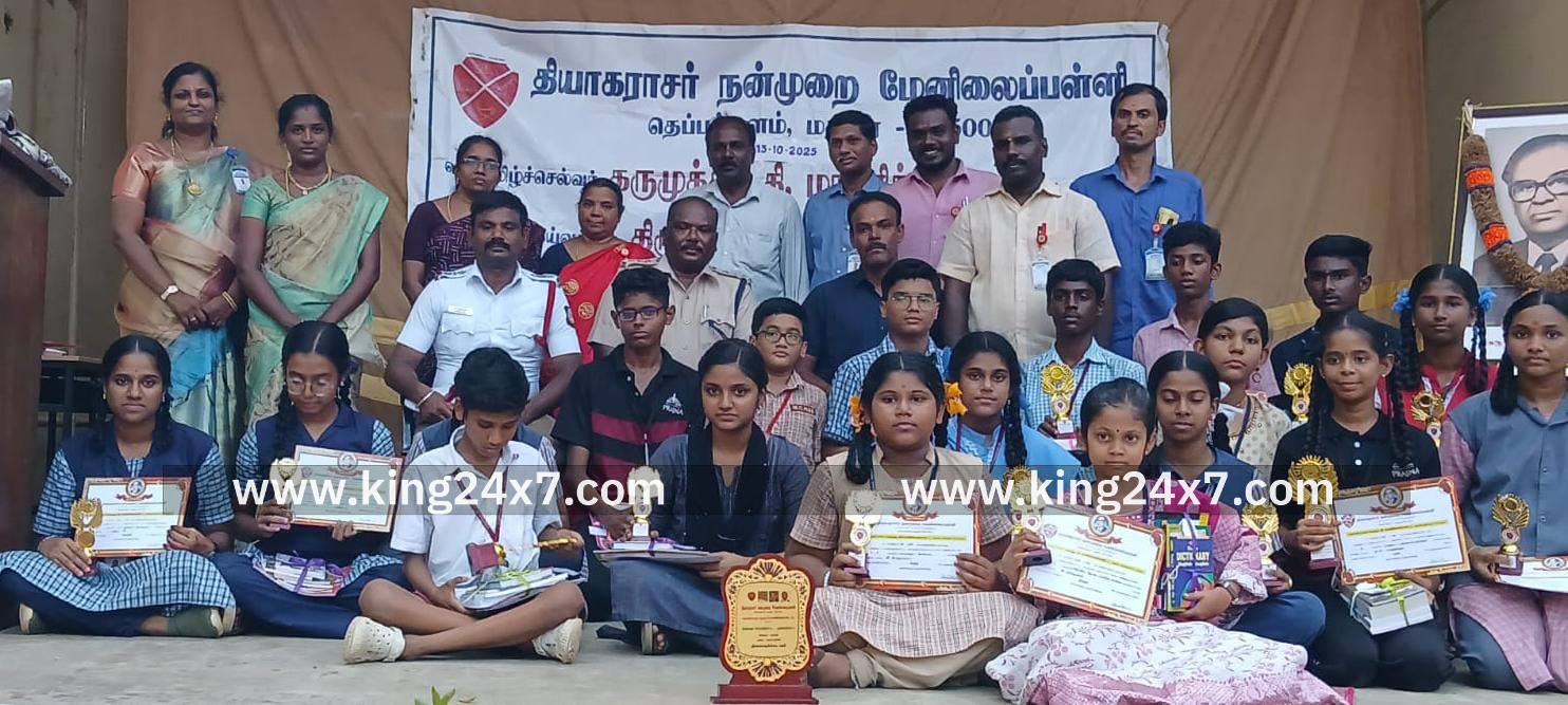மதுரை தெப்பக்குளம், தியாகராசர் நன்முறை மேனிலைப் பள்ளியில் செந்தமிழ்ச்செல்வர் கருமுத்து மாணிக்கவாசகம் அவர்களின் நினைவு நாள் பேச்சு,ஓவியப் போட்டிகள் மற்றும் தெய்வத்திரு சிந்தாமணி ஆச்சி நினைவு நாள் சிறப்புச் சொற்பொழிவு இன்று (அக்.13) பள்ளியில் நடைபெற்றது. தலைமையாசிரியர் அறிவழகன் தலைமை வகிக்க, பள்ளியின் முன்னாள் மாணவரும் இந்நாள் மதுரை வடக்கு சரகம் போக்குவரத்துப் பிரிவு காவல் உதவி ஆணையர் இளமாறன் வாழ்த்துரை வழங்க, பள்ளியின் பசுமைக்கால நினைவுகளைப் பகிர்ந்து கொண்டார். உடன் திலகர் திடல் போக்குவரத்துக் காவல் ஆய்வாளர் தங்கமணி சிறப்பு விருந்தினராகக் கலந்து கொண்டு திருக்குறளை சுட்டிக்காட்டி மாணவர்கள் வாழ்வில் உயர்வதற்கான பல வழிவகைகளை நகைச்சுவையுடன் பேசினார். பேச்சு மற்றும் ஓவியப் போட்டிகளில் மதுரையைச் சுற்றியுள்ள 30க்கும் மேற்பட்ட பள்ளியிலிருந்து மாணவர்கள் கலந்து கொண்டனர். போட்டிகளில் வெற்றி பெற்ற மாணவர்களுக்குப் பரிசுப் புத்தகங்களும் கேடயங்களும் வழங்கப்பட்டன. அதிக புள்ளிகள் பெற்று மகாத்மா சிபிஎஸ்சி பாபா பில்டிங் பள்ளி ஒட்டுமொத்தக் கேடயம் வென்றது.. பள்ளியின் தமிழாசிரியை கார்த்திகேஸ்வரி நன்றியுரை வழங்கினார். தமிழாசிரியர்கள் சாந்தி, சரவணன் ஆகியோர் விழாவைத் தொகுத்து வழங்கினார்கள்.