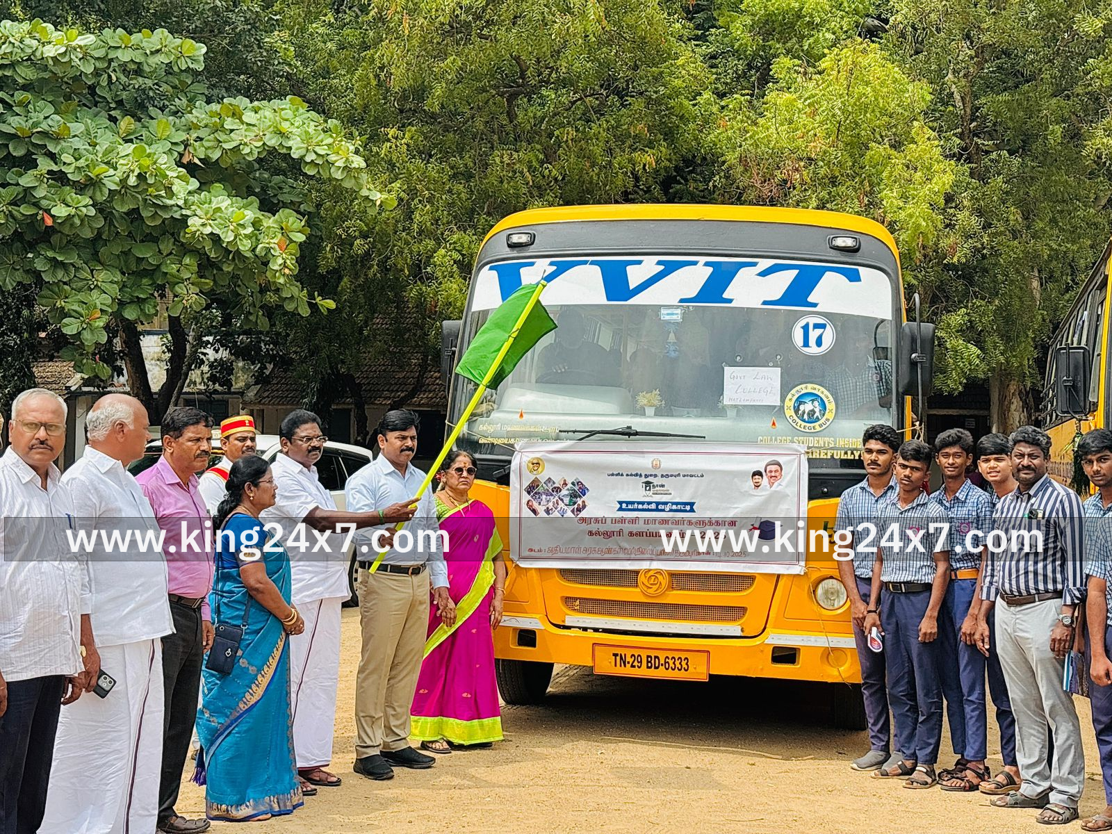 அரசு பள்ளி மாணவர்களுக்கான கல்லூரி களப்பயணம் மாவட்ட ஆட்சியர் கொடி அசைத்து துவங்கி வைத்தார்;