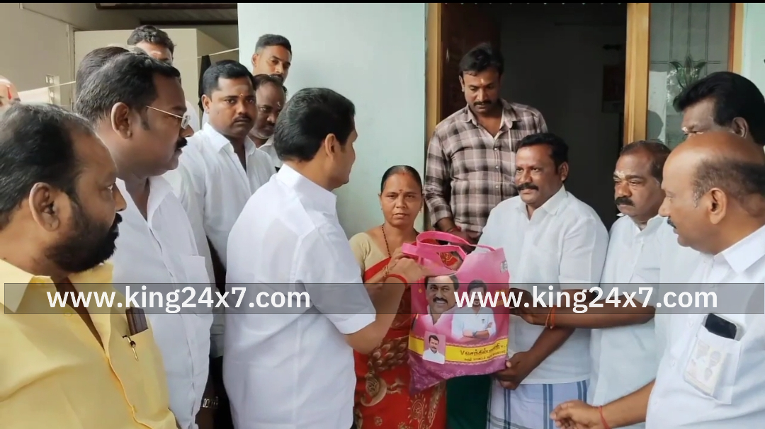 கரூர் சட்டமன்ற தொகுதியில் வசிக்கும் பொதுமக்கள் குடும்பங்களுக்கு தீபாவளி பரிசு கொடுத்து வாழ்த்து தெரிவித்தார் செந்தில் பாலாஜி.
