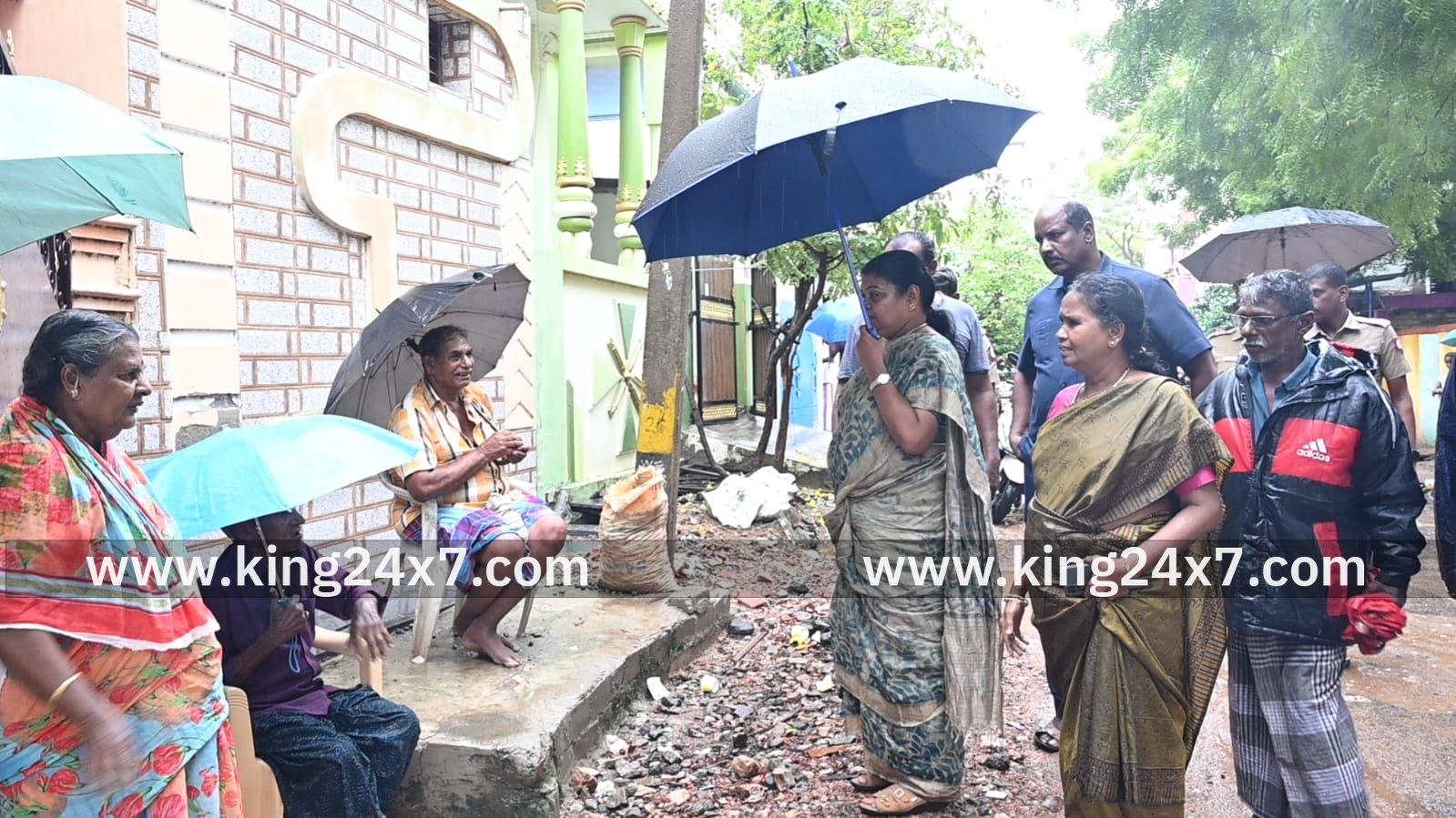 தூத்துக்குடியில் தொடர்ந்து கனமழை பெய்து வருகிறது, இதனால் தாழ்வான பகுதிகளில் மழை நீர் தேங்கியுள்ளது. இதையடுத்து தூத்துக்குடி 9வது வார்டுக்கு உட்பட்ட பூபாலராயர்புரம் 2வது தெரு பகுதியில் கழிவு நீர் கால்வாயில் அடைப்பு ஏற்பட்டதால் வீடுகளுக்குள் வெள்ளநீர் புகுவதாக பொதுமக்களிடமிருந்து தகவல் கொடுத்தனர். இதைஅடுத்து, சமூக நலன் மற்றும் மகளிர் உரிமைத்துறை அமைச்சரும், தூத்துக்குடி வடக்கு மாவட்ட திமுக செயலாளருமான திருமதி. கீதாஜீவன் உடனடியாக அங்கு நேரில் சென்று ஆய்வு மேற்கொண்டார். மேலும் வெள்ளநீர் தேங்காதவாறு கழிவுநீர் கால்வாயை உடனடியாக தூர்வார அதிகாரிகளுக்கு உத்தரவிட்டதுடன், சிறிது நேரம் அங்கேயே நின்று பணிகளை துரிதப்படுத்தினார். உடன் மாநகர திமுக செயலாளர் ஆனந்தசேகரன், பகுதி செயலாளர் ஜெயக்குமார், தகவல் தொழில்நுட்பப் பிரிவு அபிராமி நாதன் வட்டச் செயலாளர் பி. கருப்பசாமி, மாமன்ற உறுப்பினர் தனலட்சுமி, வட்ட பிரதிநிதி அந்தோணி உள்ளிட்டோர் கலந்து கொண்டனர்.