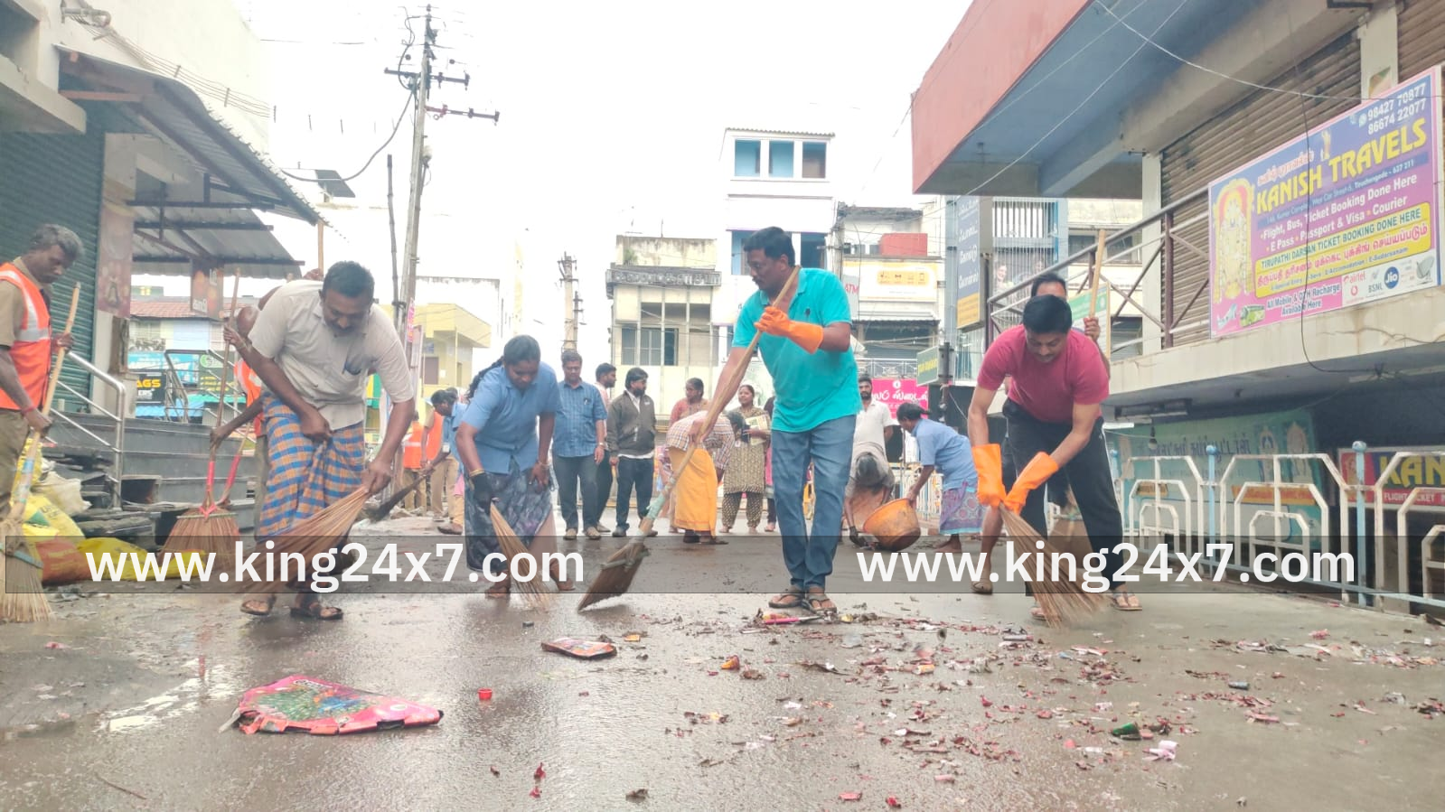 திருச்செங்கோடு நகராட்சி 33 வார்டுகளை கொண்ட ஒரு மிகப்பெரிய நகராட்சியாகும். தீபாவளி அன்று பொதுமக்கள் பட்டாசு வெடித்து கோலாகலமாக கொண்டாடினார்கள். பட்டாசு வெடித்து மீதமுள்ள பட்டாசு கழிவுகளைஅவ்வப்போது கூட்டி குவிக்காமல் அப்படியே தெருவில் போடுவது வாடிக்கையாக நடந்து கொண்டுள்ளது.எதனால் நகரின் அனைத்து தெருக்களிலும் பட்டாசு குப்பைகள் சிதறி கிடந்தது இதனை கண்ட நகர்மன்றத் தலைவர் நளினி சுரேஷ் பாபு ஆணையாளர் வாசுதேவன் ஆகியோர் ஒட்டுமொத்தமாக பட்டாசு கழிவுகளை அகற்றும் பணியில் ஈடுபட நகராட்சி தூய்மை பணியாளர்களுக்கு உத்தரவிட்டனர் அதன் பேரில் துப்புரவு அலுவலர் சோழராஜ் தலைமையில் இன்று தூய்மை பணியாளர்கள் ஒட்டுமொத்தமாக பட்டாசு கழிவுகளை அகற்றும் பணியில் ஈடுபட்டனர். மேலும் அப்பகுதி பொதுமக்கள் மற்றும் தன்னார்வலர்கள் இணைந்து தூய்மை பணியாளர்களுக்கு ஒத்துழைப்பு கொடுத்து பட்டாசு கழிவுகளை அகற்றினார்கள். இதுபோன்று அனைத்து பகுதிகளிலும் பொதுமக்கள் நகராட்சி தூய்மை பணியாளர்களுக்கு ஒத்துழைப்பு கொடுத்தால் மிகவும் உறுதுணையாக இருக்கும் என துப்புரவு அலுவலர் சோழராஜ் கூறினார்.மழை பெய்து தெருவெல்லாம் ஈரமாக இருக்கும் நிலையில் மிகவும் சிரமப்பட்டு தூய்மை பணியாளர்கள் பட்டாசு கழிவுகளை அகற்றும் பணியில் ஈடுபட்டனர்.