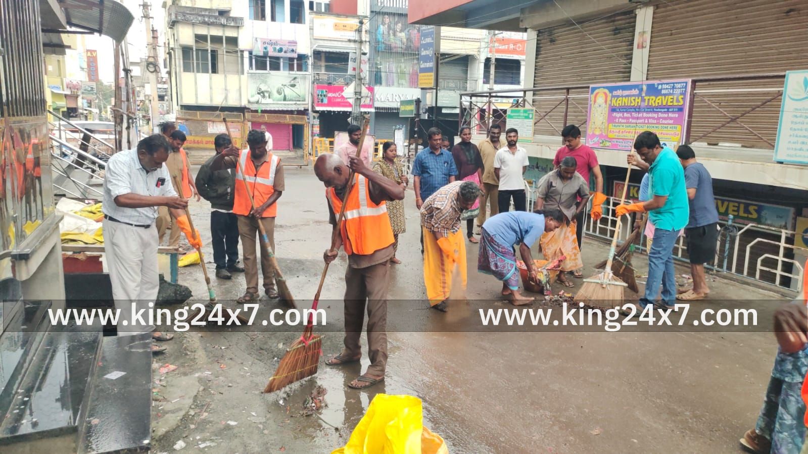 திருச்செங்கோடு நகரப் பகுதிகளில் தீபாவளியை ஒட்டி வெடிக்கப்பட்ட பட்டாசு குப்பைகள் அகற்றும் பணியில் ஈடுபட்ட நகராட்சி தூய்மை பணியாளர்கள் மற்றும் தன்னார்வலர்கள் ஒட்டுமொத்த தூய்மை பணியாளர்களையும் பட்டாசு கழிவுஅகற்றும் பணியில் ஈடுபடுத்திய நகர மன்ற தலைவர் நளினி சுரேஷ்பாபுமற்றும் நகராட்சி ஆணையாளர் வாசுதேவன;