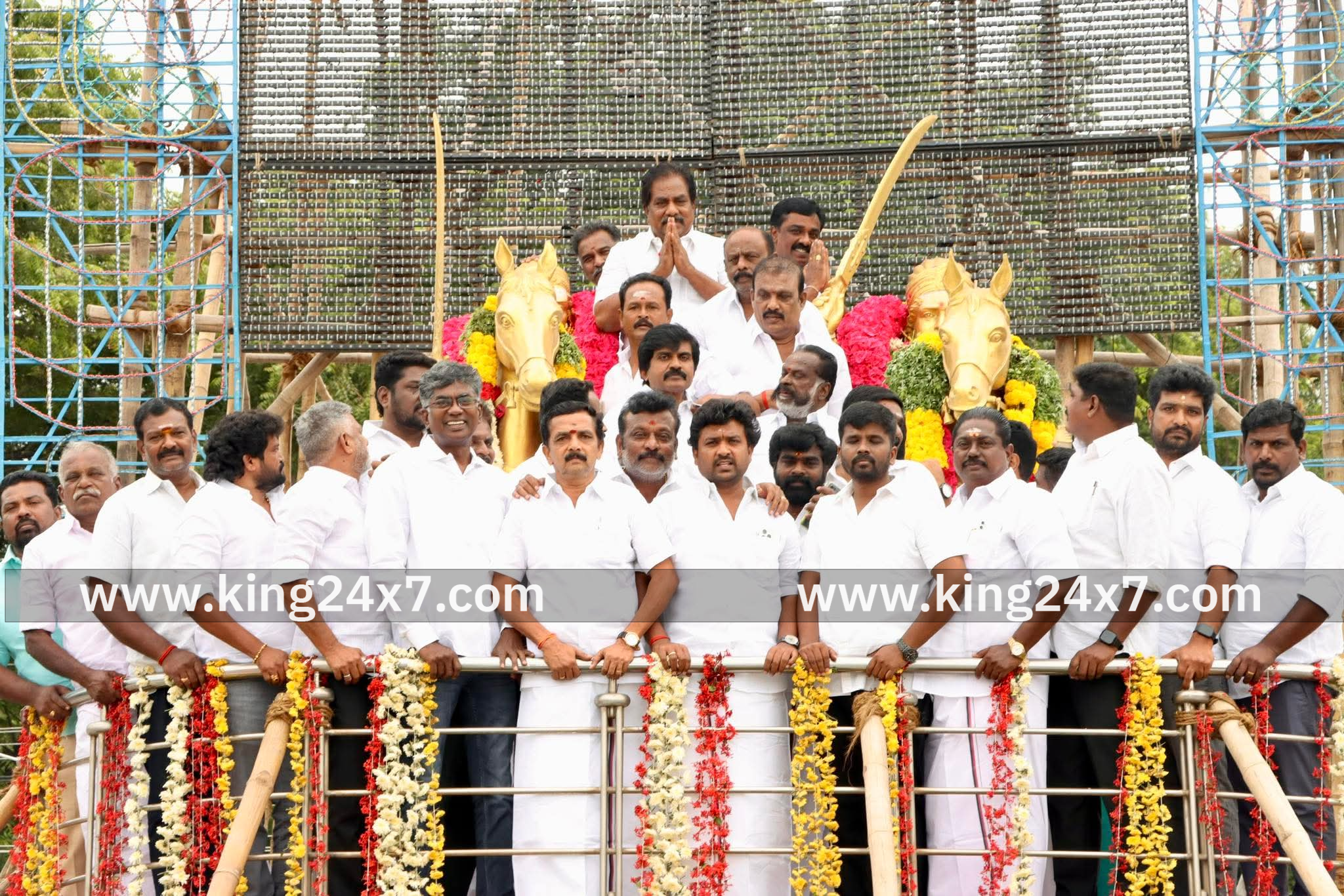 மருது பாண்டியர்கள் சிலைக்கு மாலை அணிவித்த அமைச்சர்