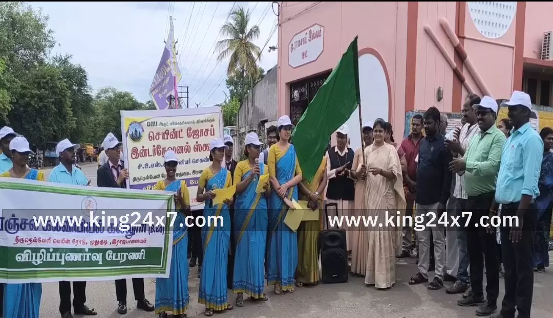 நீர் நிலைகளை பாதுகாக்க வலியுறுத்தி விருதுநகர் மாவட்டம் ராஜபாளையத்தில் நடைபெற்ற விழிப்புணர்வு பேரணியில் நூற்றுக்கும் மேற்பட்ட மாணவ மாணவிகள் ஆசிரியைகள் கலந்து கொண்டனர்.*