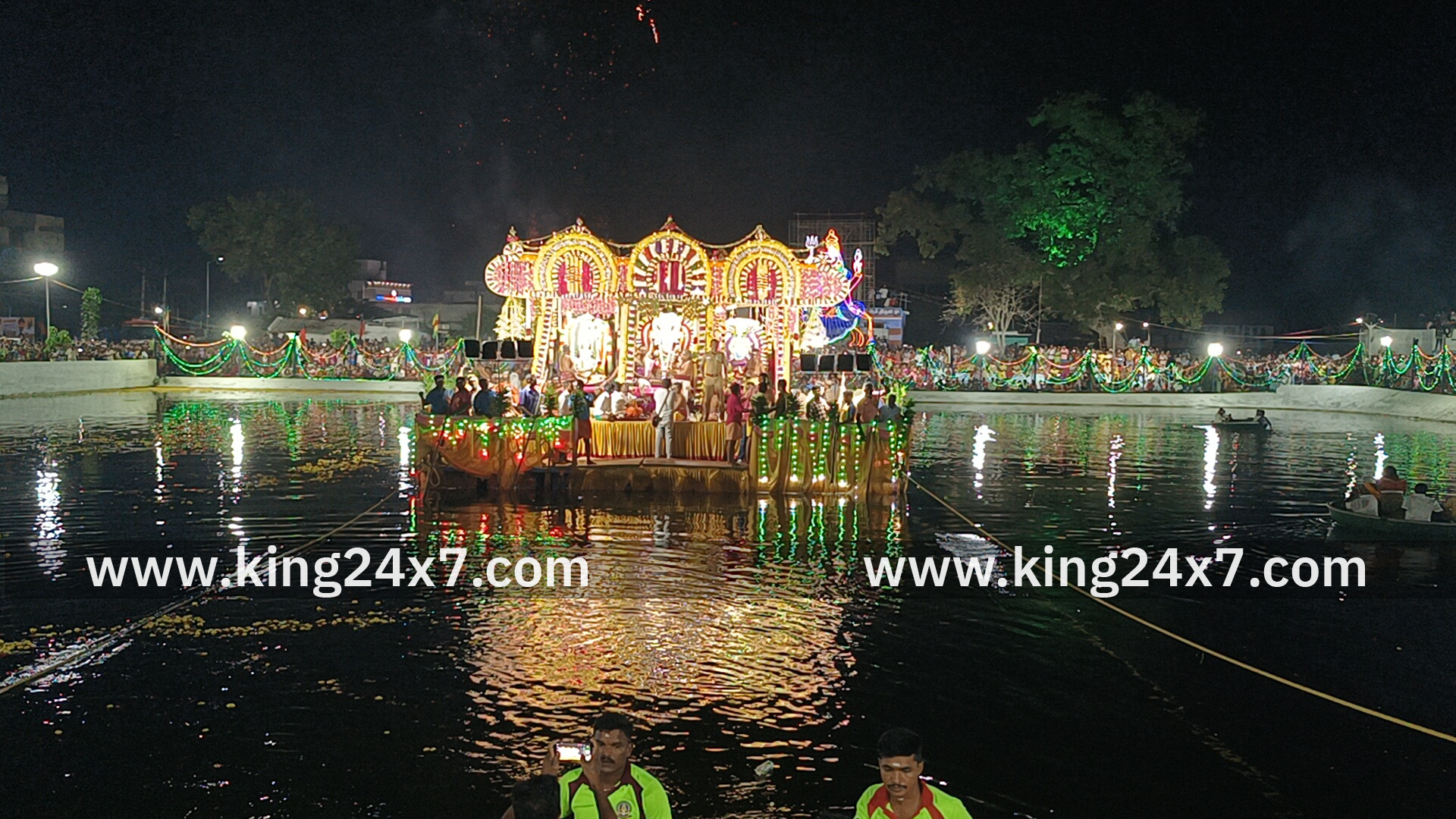 திருச்செங்கோடு மாரியம்மன் திருவிழாவை ஒட்டி பெரிய தெப்பக் குளத்தில் தெப்பத் தேரோட்டம். பூக்களாலும் மின் விளக்குகளாலும் அலங்கரிக்கப் பட்ட தெப்பத் தேரில் ஸ்ரீபெரிய மாரியம்மன், ஸ்ரீசின்ன மாரியம்மன், ஸ்ரீ அழகு முத்து மாரியம்மன் உலா. ஆயிரக்கணக்கான பக்தர்கள் கலந்து கொண்டு தெப்போற்சவத்தை கண்டு சாமி தரிசனம்;