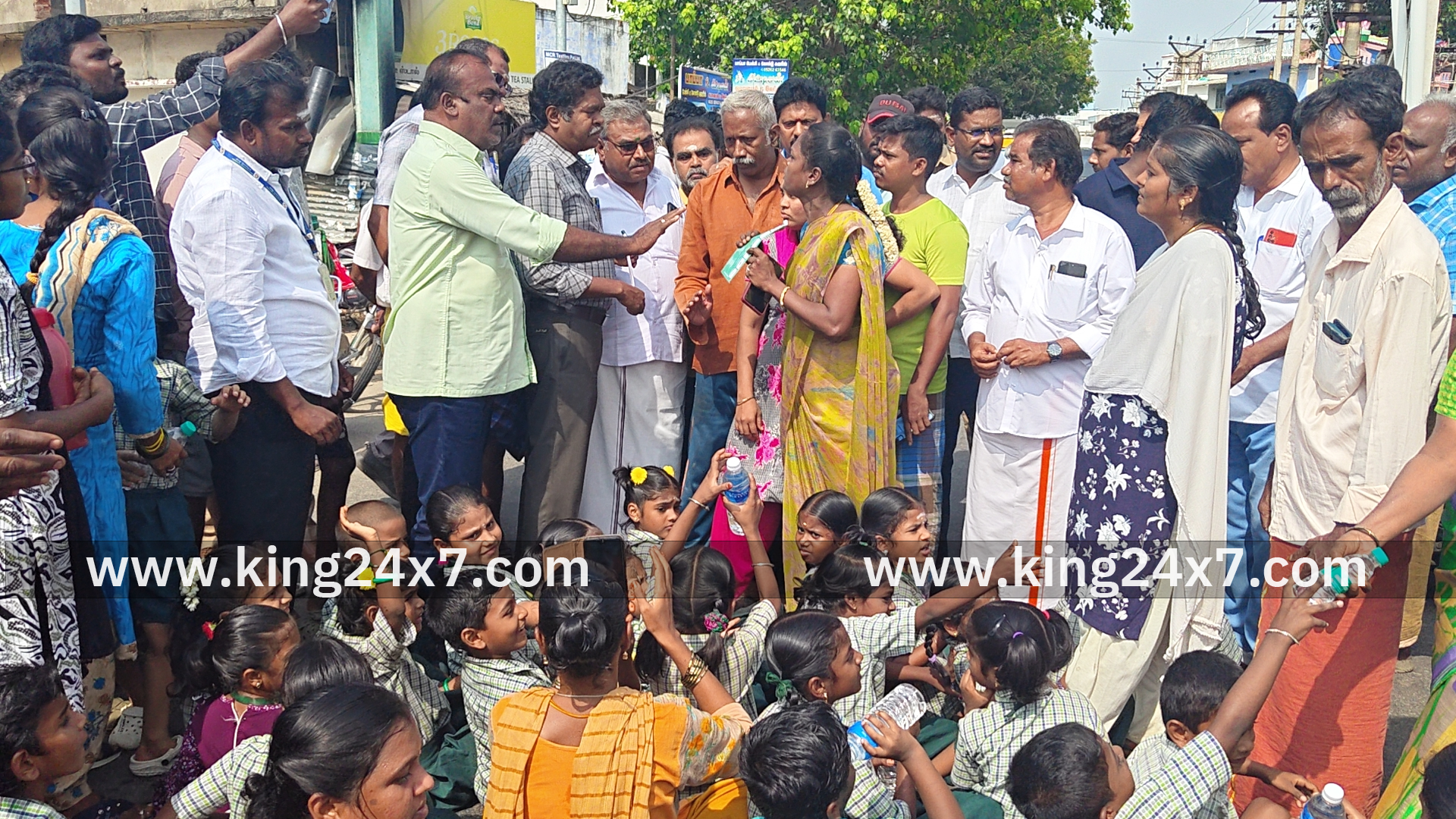 அரசு பள்ளி கழிப்பிடம் பணி தாமதம் மாணவர்கள் சாலை மறியல்