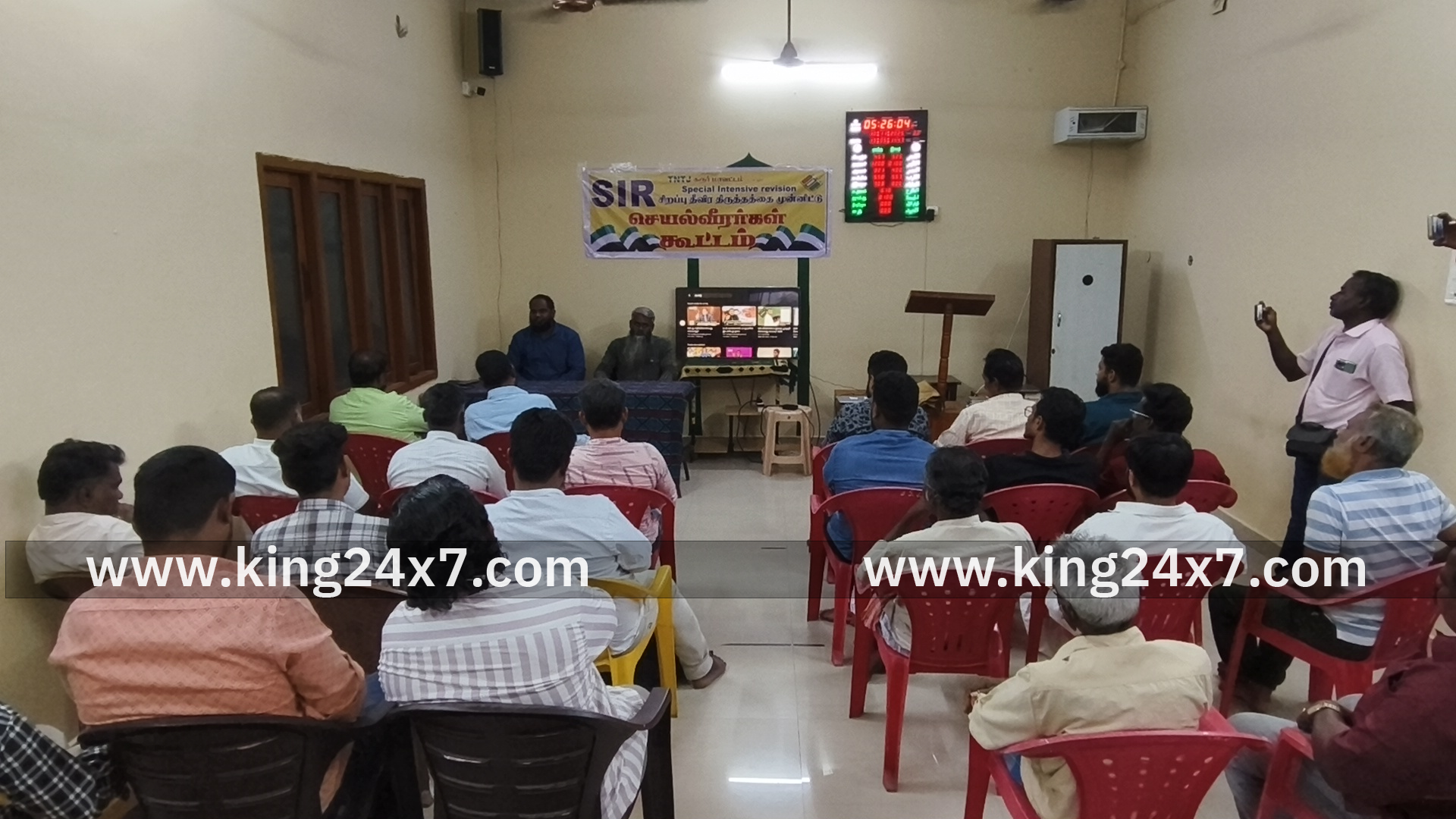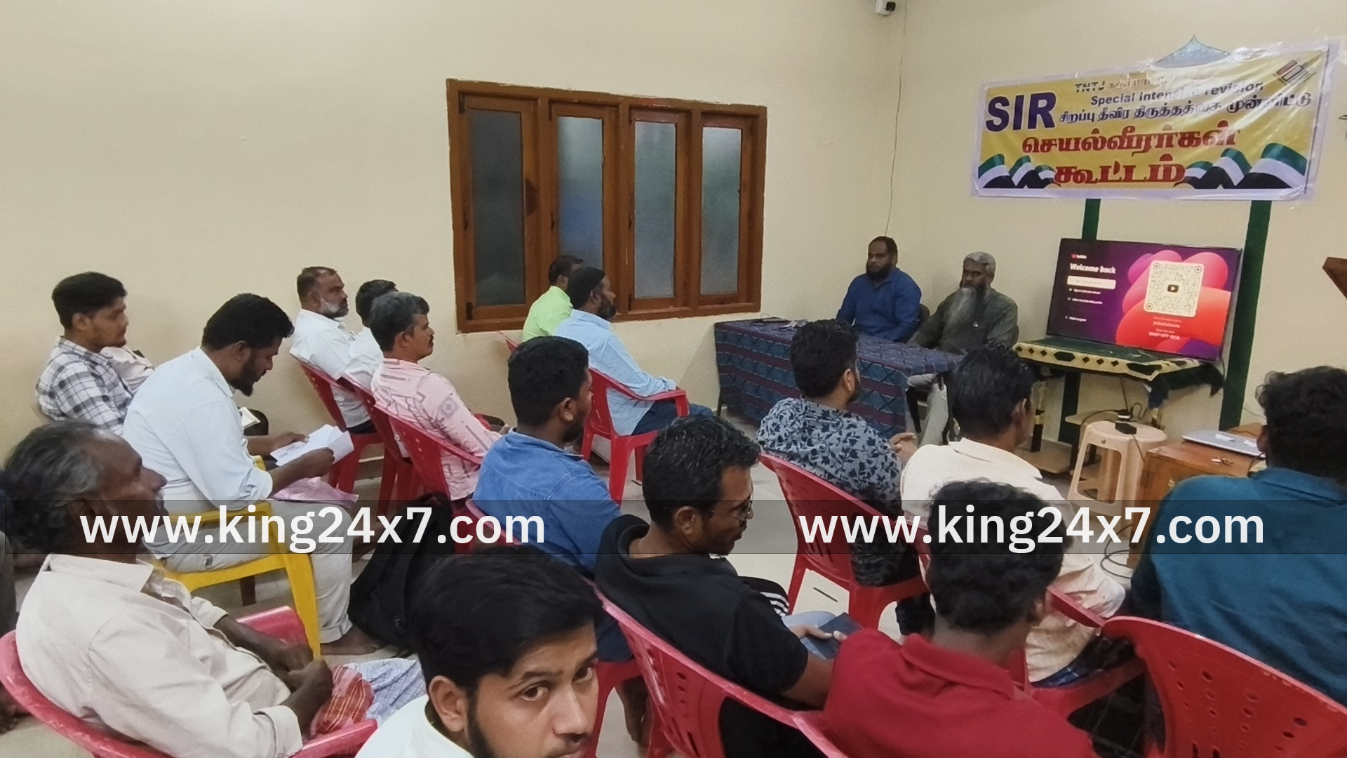 கரூர் மாவட்டம் குளித்தலையில் தமிழ்நாடு தவ்ஹீத் ஜமாஅத் பள்ளிவாசலில் சிறப்பு தீவிர திருத்தத்தை முன்னிட்டு அவசர மாவட்ட செயல்வீரர்கள் கூட்டம் இன்று நடைபெற்றது. மாநிலத் துணைத் தலைவர் தாவூத் கைஸர், மாநில தலைவர் மதார்ஷாபாபு ஆகியோர் தலைமையில் நடைபெற்ற இக்கூட்டத்தில் SIR நடைமுறைகள் குறித்தும், அதில் பின்பற்ற வேண்டிய ஒழுங்குகள் குறித்தும் எடுத்துரைத்தனர். இதில் மாவட்ட, கிளை நிர்வாகிகள் கலந்துகொண்டனர். மாநிலத் துணைத் தலைவர் தாவூத் கைஸர் அளித்த பேட்டி. SIR என்பது ஒரு நல்ல நோக்கத்தோடு கொண்டு வந்ததாக நாம் பார்க்கவில்லை. வடமாநிலங்களிலே தேர்தல் ஆணையத்தின் துணைகொண்டுதான் ஆளக்கூடிய ஒன்றிய பாஜக அரசு பல இடங்களில் வெற்றி பெற்றிருக்கிறது. காங்கிரஸ் தலைவர் ராகுல்காந்தி கூட அதை தோலுருத்தி காட்டியிருக்கிறார். ஹரியானாவில் நடந்த வாக்கு மோசடி வாக்கு திருட்டுகளை பற்றி பேசிருக்காங்க. தமிழகத்தில் SIR என்ற திட்டத்தின் மூலமாக பல லட்சம் வாக்காளர்களை ஈர்க்க வேண்டும், தகுதியான வாக்காளர்களை நீக்க வேண்டும், தகுதியற்ற வாக்காளர்களை சேர்க்க வேண்டும் என்ற நோக்கத்திலே தேர்தல் ஆணையம் அறிவித்திருக்கின்றது இது ஒரு அம்சம். மேலும் ஒரு மாதத்திற்க்குள் இந்த திருத்தம் நடைபெறும் என்பது சாத்தியமே இல்லை, படிப்பறிவு இல்லாத மக்கள் எப்படி நிரப்புவார்கள் இதில் நிறைய குளருபடிகள், பல கேள்விகள் உள்ளது என்பதால் இதை வன்மையாக கண்டிக்கின்ற அம்சம்தான் என மாநிலத் துணைத் தலைவர் தாவூத் கைஸர் பேட்டி அளித்துள்ளார்.