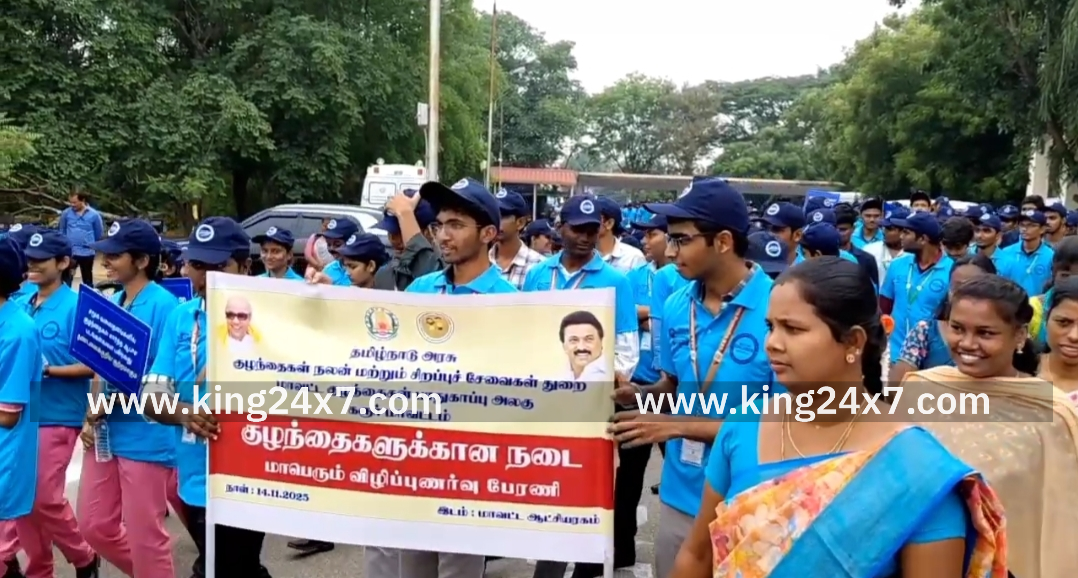 குழந்தைகள் தின விழாவை முன்னிட்டு கரூரில் நடைபெற்ற விழிப்புணர்வு பேரணியை மாவட்ட ஆட்சியர் துவக்கி வைத்தார்.