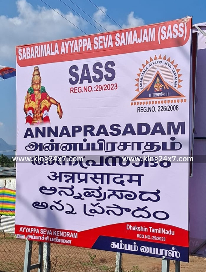 தேனி மாவட்டம் கம்பம் டு கூடலூர் செல்லும் வழியில் இன்று நவம்பர் 20 ஸ்ரீ ஐயப்பா சேவா சமாஜம் சார்பில் சபரிமலை செல்லும் ஐயப்ப பக்தர்களுக்கு அன்ன பிரசாதம் வழங்கப்பட்டது இதில் முன்னாள் தேசிய தலைவர் திரு .ராஜன் ஜி அவர்கள் கலந்து கொண்டார் . ஸ்ரீ ஐயப்பா சேவா சமாஜம் நிர்வாகிகளும் உறுப்பினர்களும் கலந்து கொண்டனர்.