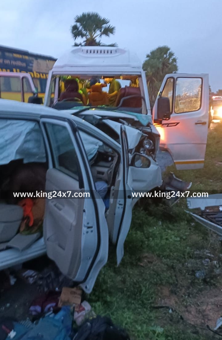 உச்சிப்புளி அருகே சுற்றுலா வானங்கள் நேருக்கு நேர் மோதியதில் சம்பவ இடத்திலே இரண்டு பேர் உயிர் இழப்பு 13 பேர் காயம்;