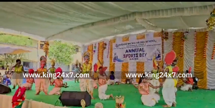 கரூரில்,வண்ண வண்ண உடை அணிந்து கையில் வாள் ஏந்தி ஆண்டு விளையாட்டு விழாவில் அசத்திய பள்ளி மாணாக்கர்கள்.