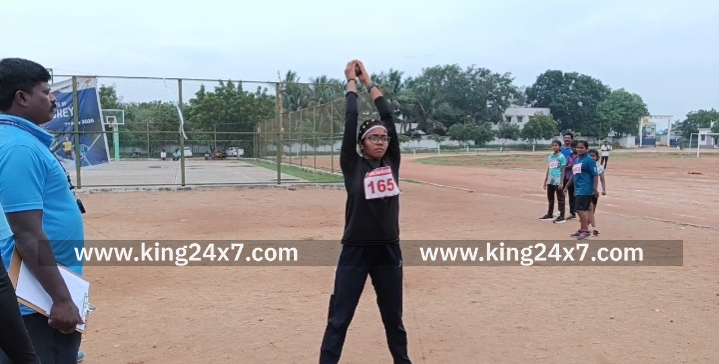 கரூரில் மாவட்ட அளவில் மாணவிகளுக்கான தடகளப்போட்டியில் மாணவிகள் உற்சாகம்.