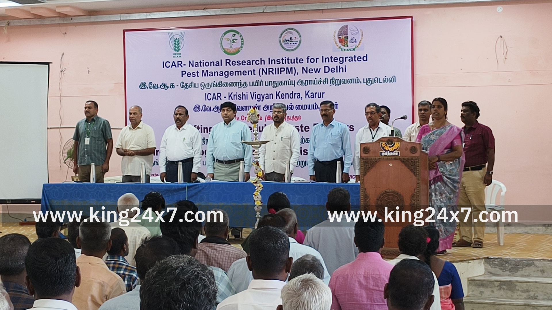 கரூர் மாவட்டம் குளித்தலையில் உள்ள தனியார் மஹாலில் இந்திய வேளாண் ஆராய்ச்சி கழகம் வேளாண் அறிவியல் மையம் மற்றும் புதுடெல்லி தேசிய ஒருங்கிணைந்த பயிர் பாதுகாப்பு ஆராய்ச்சி நிறுவனம் இணைந்து நடத்தும் ஆதிதிராவிட விவசாயிகள் நல மேம்பாட்டிற்கான திட்டத்தின் கீழ் ஒருங்கிணைந்த பயிர் பாதுகாப்பிற்கான விழிப்புணர்வு மற்றும் இடுபொருள் வழங்கும் நிகழ்ச்சி இன்று நடைபெற்றது. பரளி மற்றும் வாலாந்தூர் கிராமத்தைச் சேர்ந்த 300-க்கும் மேற்பட்ட விவசாயிகள் கலந்து கொண்டனர். ஹைதராபாத் வேளாண் தொழில்நுட்ப பயன்பாட்டு ஆராய்ச்சி நிறுவனம் இயக்குனர் ஷேக் மீரா, புது டெல்லி தேசிய ஒருங்கிணைந்த பயிர் பாதுகாப்பு ஆராய்ச்சி நிறுவனம் இயக்குனர் தங்கவேல் கலந்துகொண்டு சிறப்புரையாற்றினார். இந்நிகழ்வில் கரூர் வேளாண் அறிவியல் மையம் முதுநிலை விஞ்ஞானி மற்றும் தலைவர் திரவியம், திருச்சி தேசிய வாழை ஆராய்ச்சி மையம் முனைவர் செல்வராஜன், மோகனூர் தமிழ்நாடு வாழை உற்பத்தியாளர் கம்பெனி நிர்வாக இயக்குனர் அஜீத்தன், கரூர் வேளாண் இணை இயக்குனர்.சிங்காரம், நபார்டு வங்கி உதவி பொது மேலாளர் பிரபாகரன் வேளாண் கல்லூரி முதன்மையர் பாலசுப்பிரமணியம் , கோயம்புத்தூர் தமிழ்நாடு வேளாண்மை பல்கலைக்கழகம் பேராசிரியர் ஆனந்தராஜா, புதுடெல்லி விஞ்ஞானி ராக்கேஷ், சிறுகமணி வேளாண் அறிவியல் மையம் தலைவர் ராஜா பாபு, குளித்தலை வேளாண் உதவி இயக்குனர் குமரன் மற்றும் விவசாயிகள் கலந்து கொண்டனர். இந்நிகழ்ச்சியில் நெல் மற்றும் வாழையில் ஒருங்கிணைந்த பயிர் பாதுகாப்பு முறைகள் குறித்து விழிப்புணர்வு ஏற்படுத்தப்பட்டது. மேலும் விவசாயக் குழுக்களுக்கு 2 பவர் டில்லர், 2 தீவனை புல் நறுக்கும் கருவி, 100 மருந்து தெளிப்பான், வாழை சாகுபடிக்கு ஏற்ற 86 மண்வெட்டி, 86 கடப்பாரை, 20 அரிவாள் போன்ற கருவிகள் விவசாயிகளுக்கும் சுய உதவிக் குழு பெண்களுக்கு 16 தையல் இயந்திரம் என ஆதிதிராவிட இன மக்களின் வாழ்வாதாரத்தை மேம்படுத்துவதற்காக ஒருங்கிணைந்த பயிர் பாதுகாப்பு ஆராய்ச்சி நிறுவனத்தின் நிதி உதவி பெற்று வேளாண் அறிவியல் மையத்தின் மூலம் இலவசமாக 250 விவசாயிகள் மற்றும் பெண்களுக்கு வழங்கப்பட்டது இந்நிகழ்ச்சியின் முடிவில் தொழில்நுட்ப வல்லுநர் முனைவர் தமிழ்ச்செல்வி நன்றி உரை வழங்கினார். இந்நிகழ்ச்சியில் 275 விவசாயிகள் மற்றும் பெண்கள் கலந்து கொண்டு பயன் அடைந்தனர்.