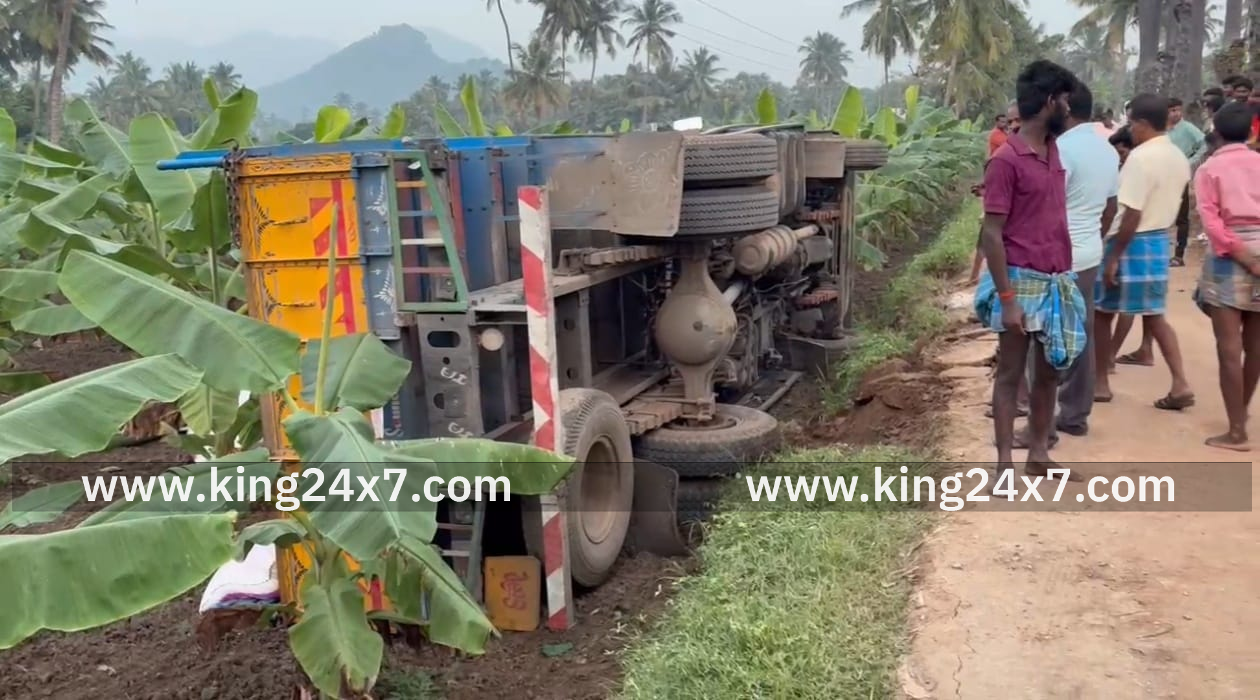 கோழித்தீவனம் ஏற்றிவந்த லாரி கவிழ்ந்து விபத்து.