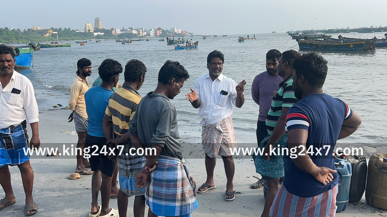 ராமேஸ்வரம் கடலில் தவறி விழுந்த மீனவரை கண்டுபிடித்து தரக்கோரி சக மீனவர்கள் மீன்பிடி அனுமதி சீட்டு வழங்கும் அலுவலகம் முன்பு அமர்ந்து ஆர்ப்பாட்டம் நடைபெற்றது;