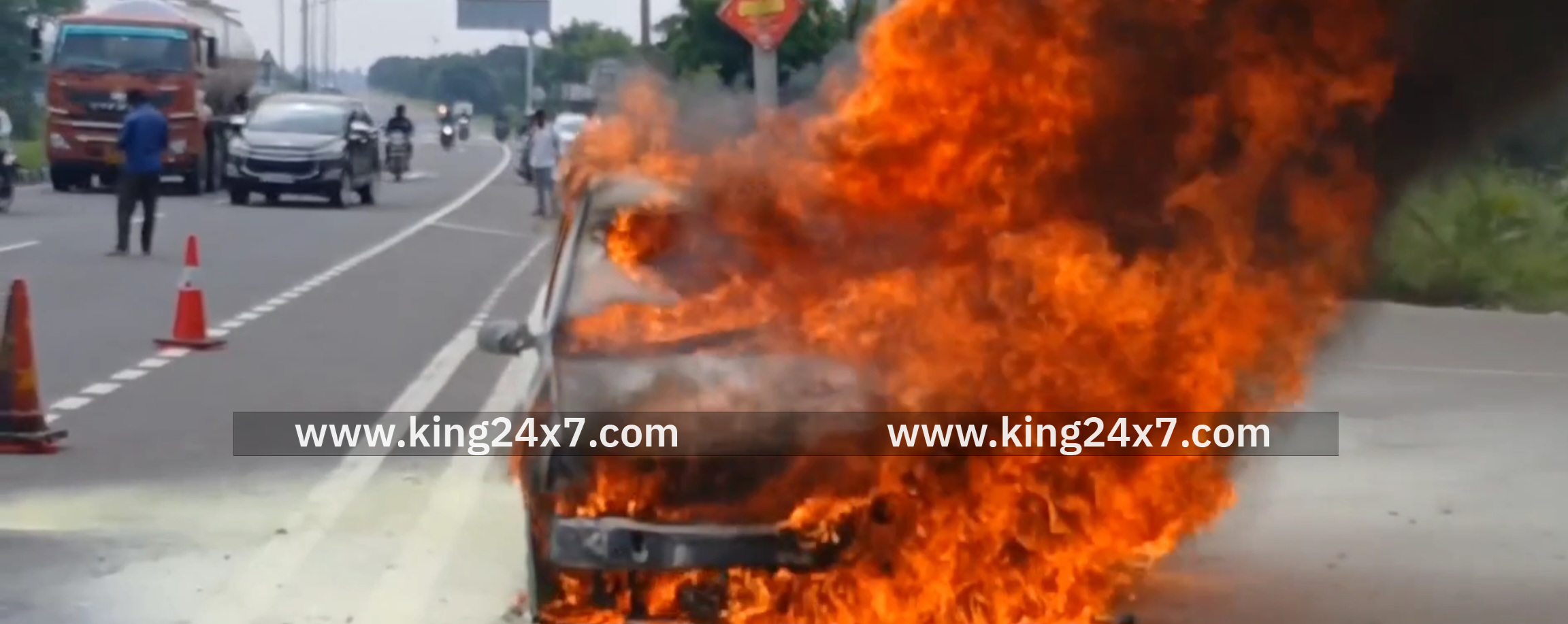 தாராபுரம் அருகே கார் தீப்பற்றி எரிந்தது – மூவர் அதிர்ஷ்டவசமாக உயிர் தப்பினர்..